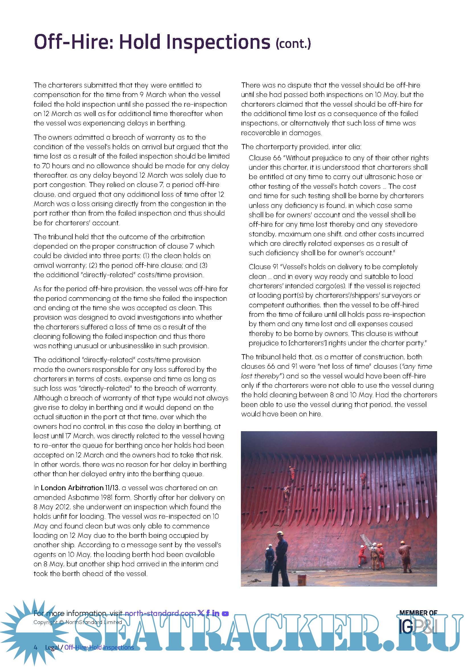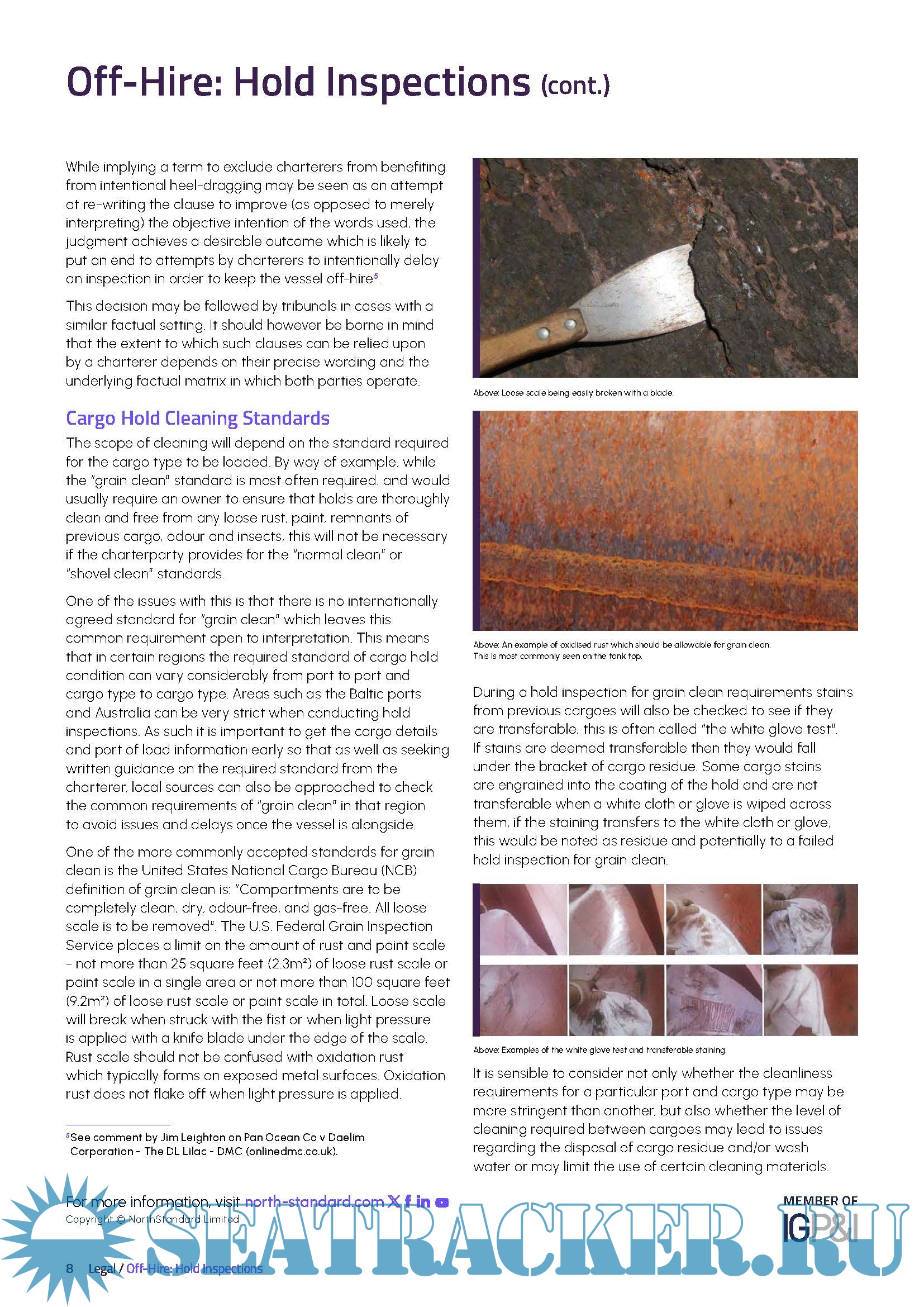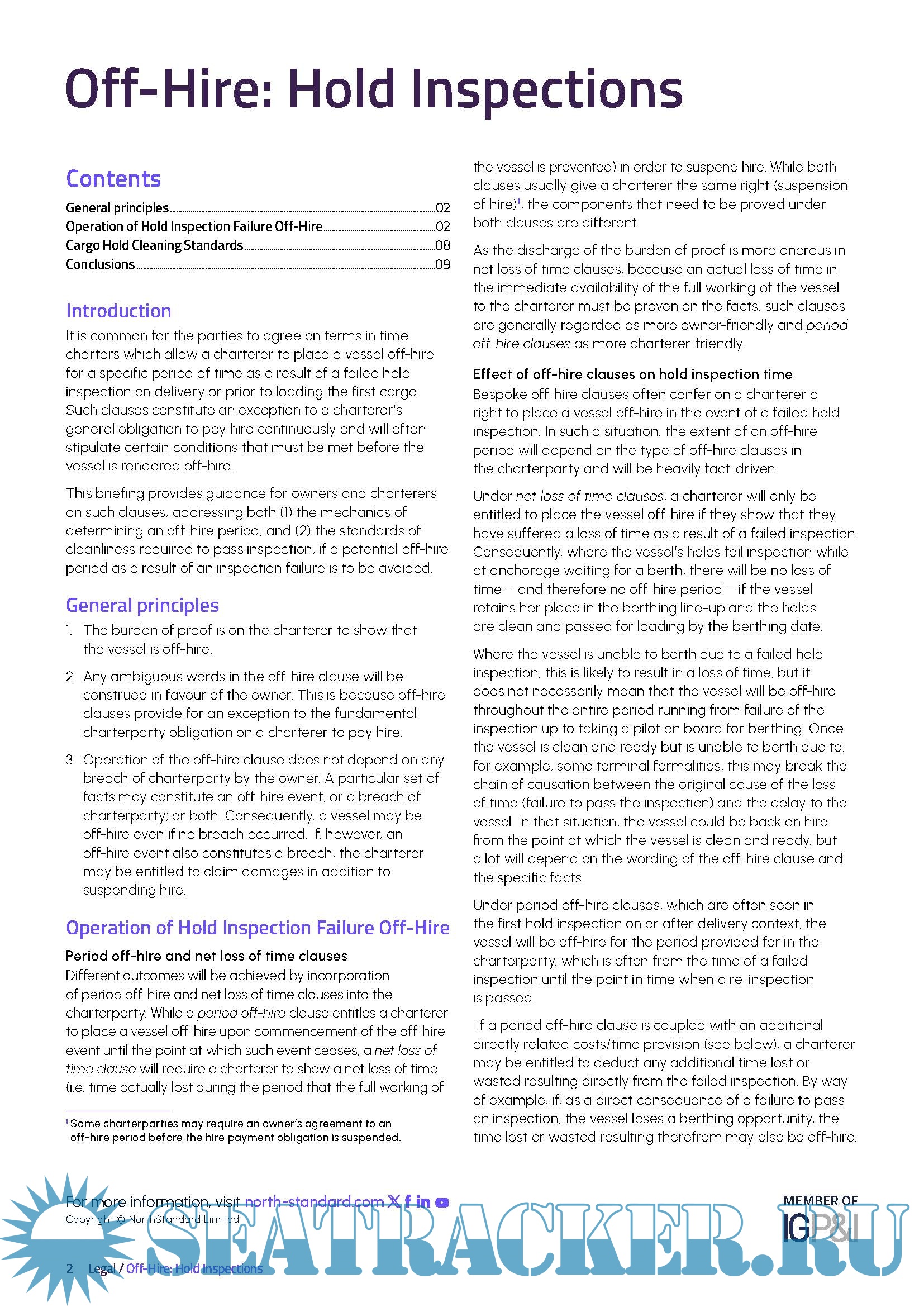 This briefing provides guidance for owners and charterers on such clauses, addressing both (1) the mechanics of determining an off-hire period; and (2) the standards of cleanliness required to pass inspection, if a potential off-hire period as a result of an inspection failure is to be avoided.