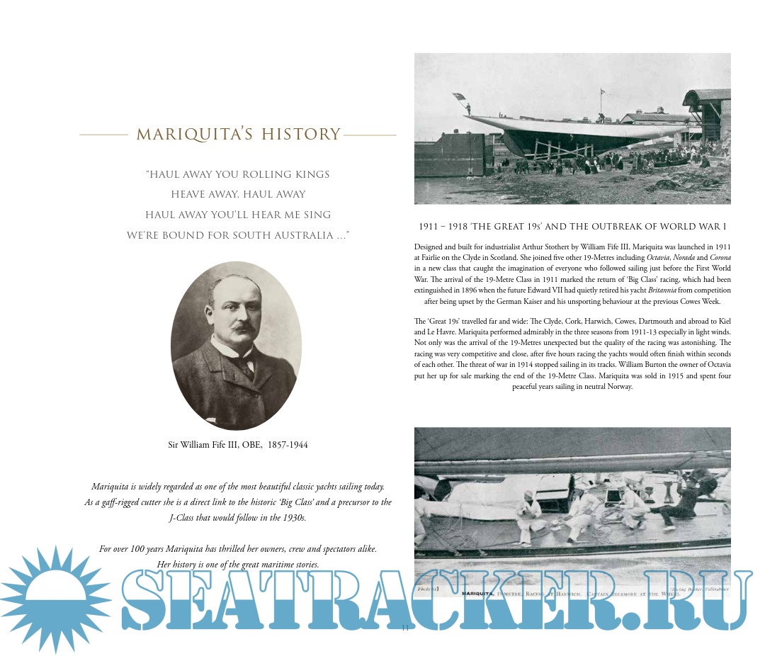 John explained to me that Mariquita was the last surviving 19-Metre yacht from a class of six that had raced before World War I. He went on to describe how the boat had been rescued from a mud berth in Pin Mill, on the river Orwell, in Suffolk, and rebuilt to almost exactly her original design, before recommencing her racing career in 2004.