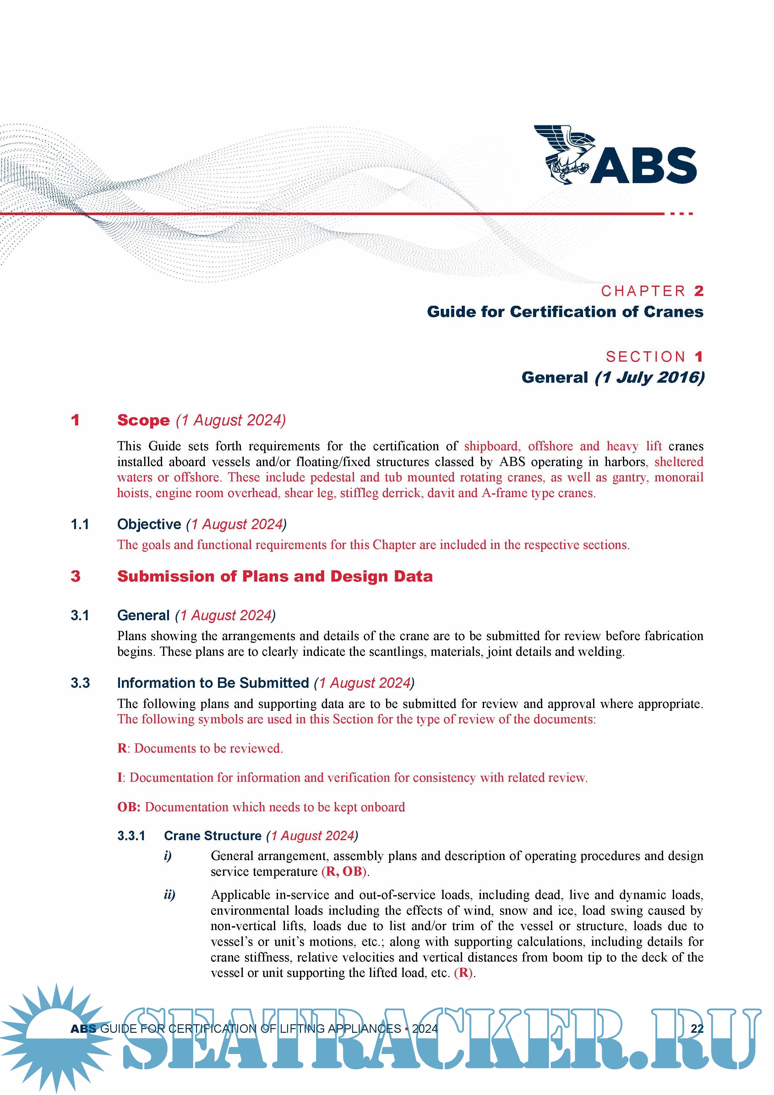 and Guides such as Guide for Certification of Cranes, Guide for Self-Unloading Cargo Gear on Great