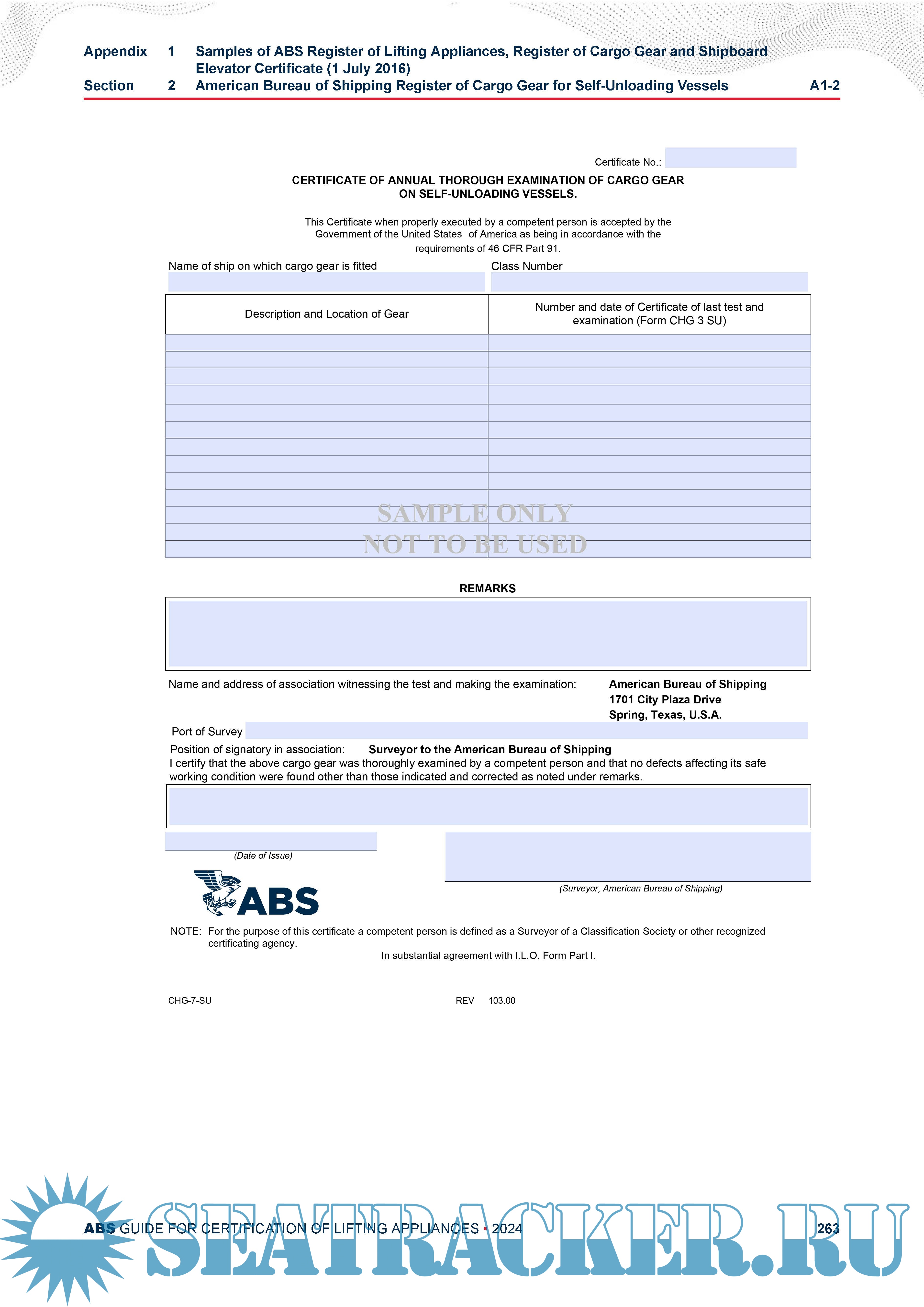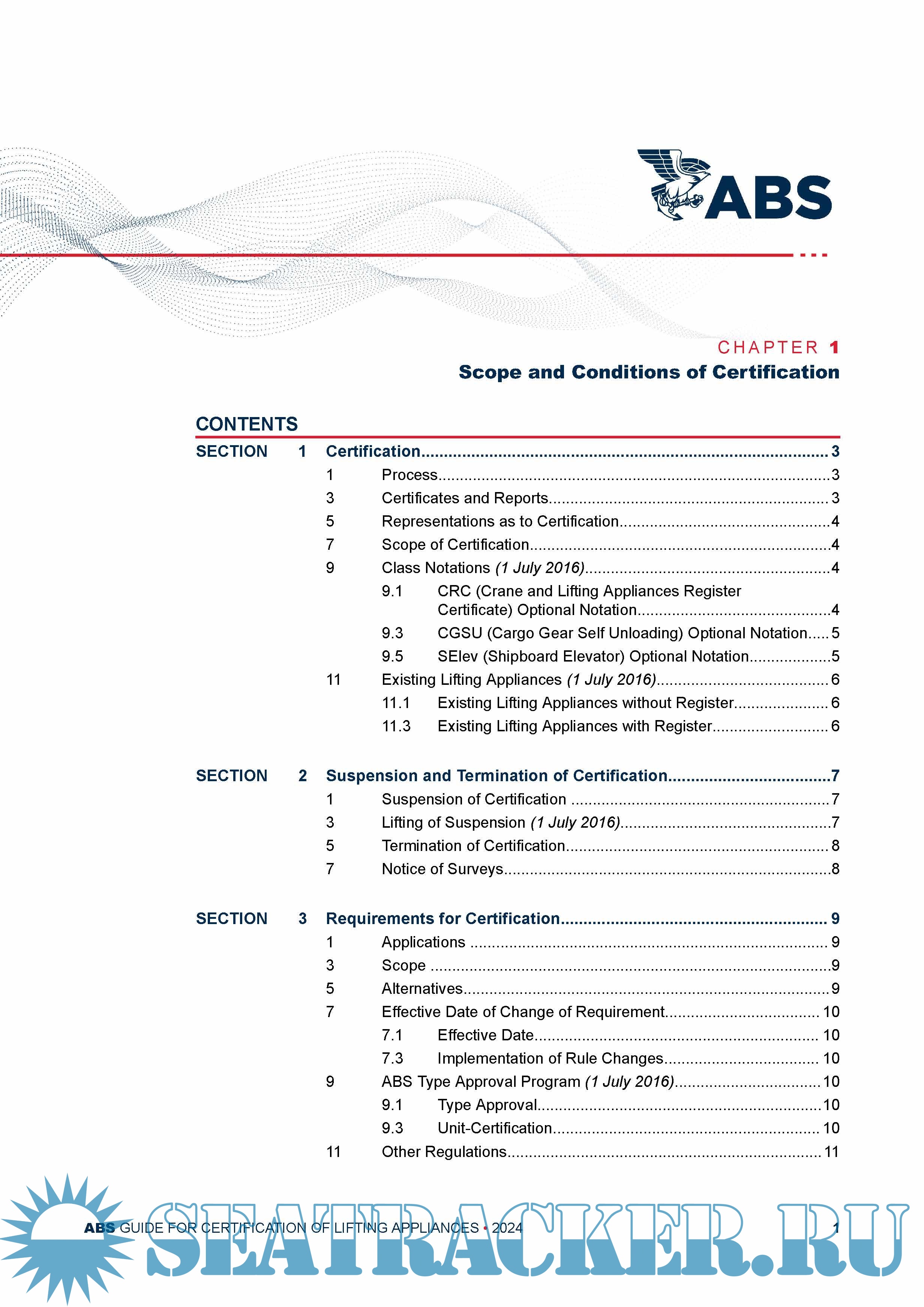 Guide for Certification of Lifting Appliances - American Bureau of Shipping (ABS) [2024, PDF]