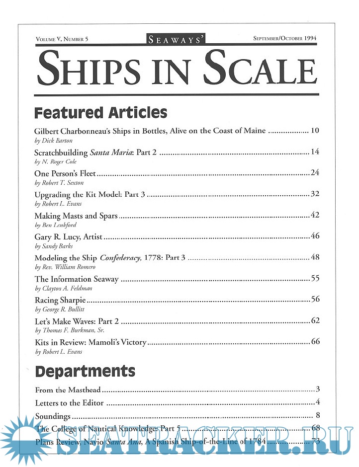 Year: 1994 Language: English Author: Scottie Dayton (Editor) Genre: Periodical publication Edition: 1994-5 Format: PDF Quality: Scanned pages Pages count: 77 Description: Seaway is the home port for Seaways Ships in Scale magazine, the leading workshop and research magazine for the ship modeler. In the magazine we explore all levels of modeling experience, all types of ships, all kinds of models, all historical eras and all construction materials