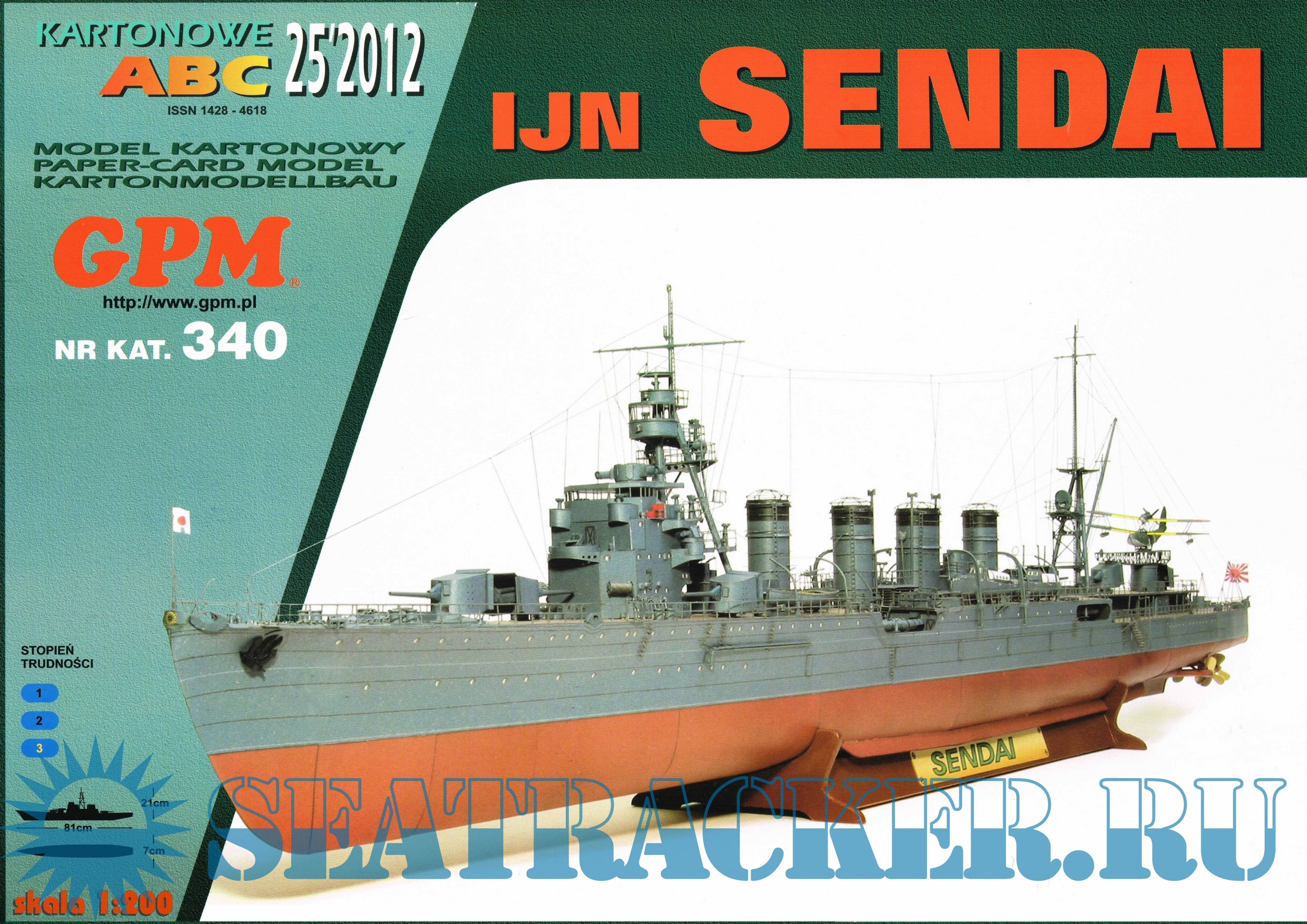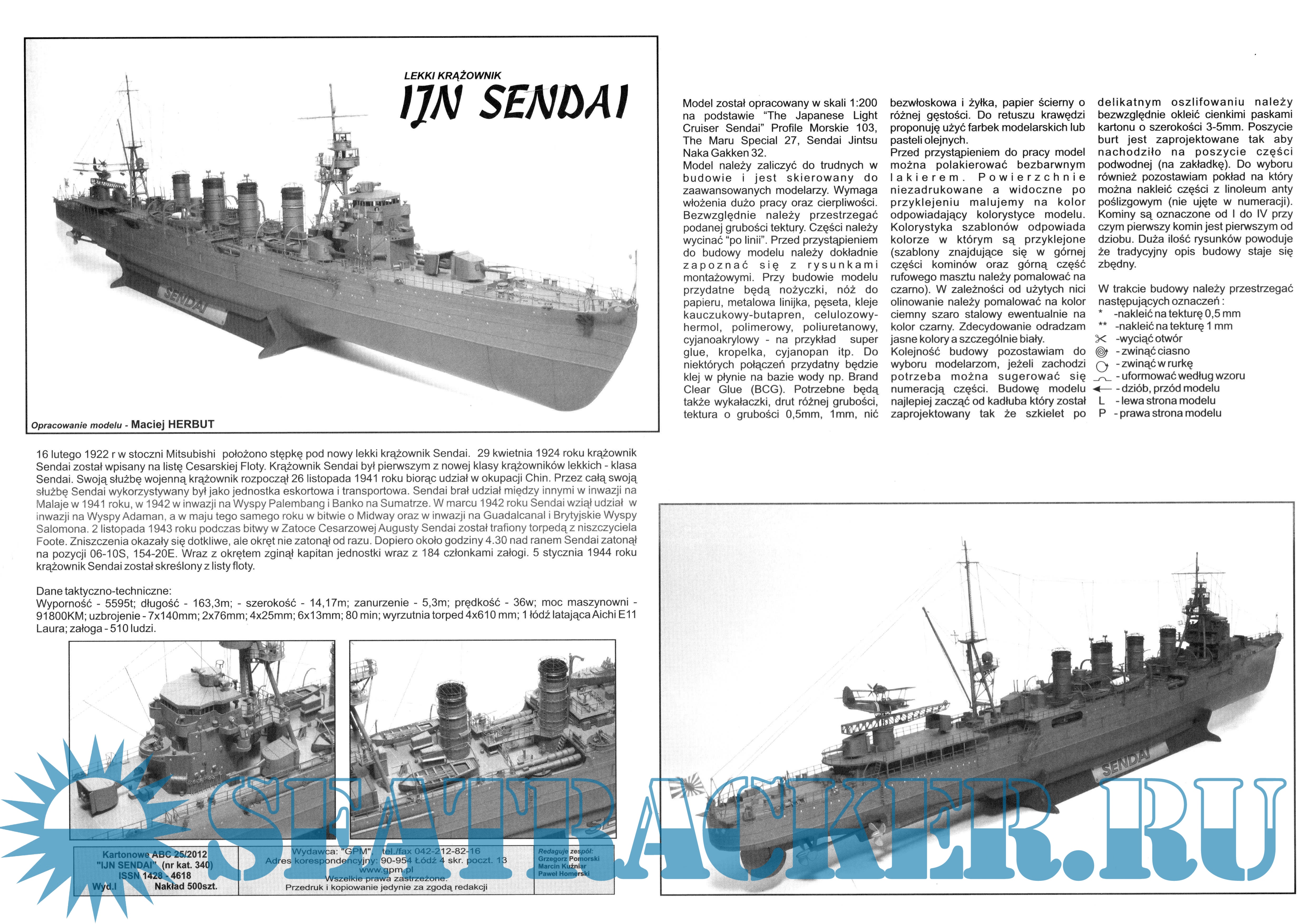 25 листов цветных выкроек и инструкций для изготовления бумажной модели японского лёгкого крейсера IJN Sendai в масштабе 1:100
