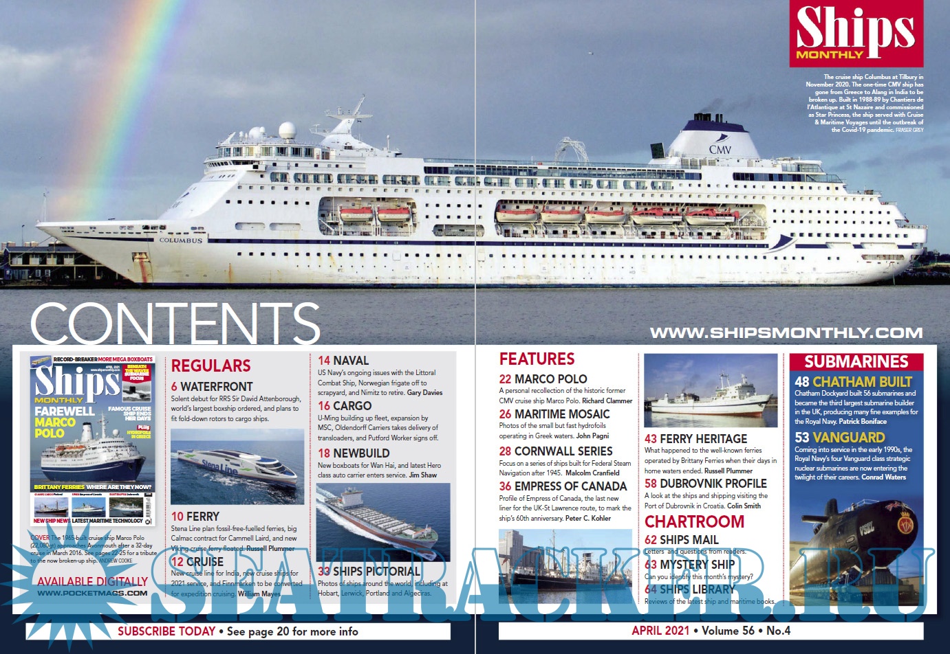 Year: 2021 Language: English Author: Ships Monthly Genre: Periodical publication Edition: 2021-04 Format: PDF Quality: eBook Pages count: 68 Description: Ships Monthly is the world's leading international shipping magazine. Ships Monthly provides news and features for ship enthusiasts and maritime professionals, including reports on the ferry, cruise, new building and cargo ship scene as well as navies across the world.The latest issue of Ships Monthly is out now, and is packed with all the usual news and features, including outstanding articles and features.