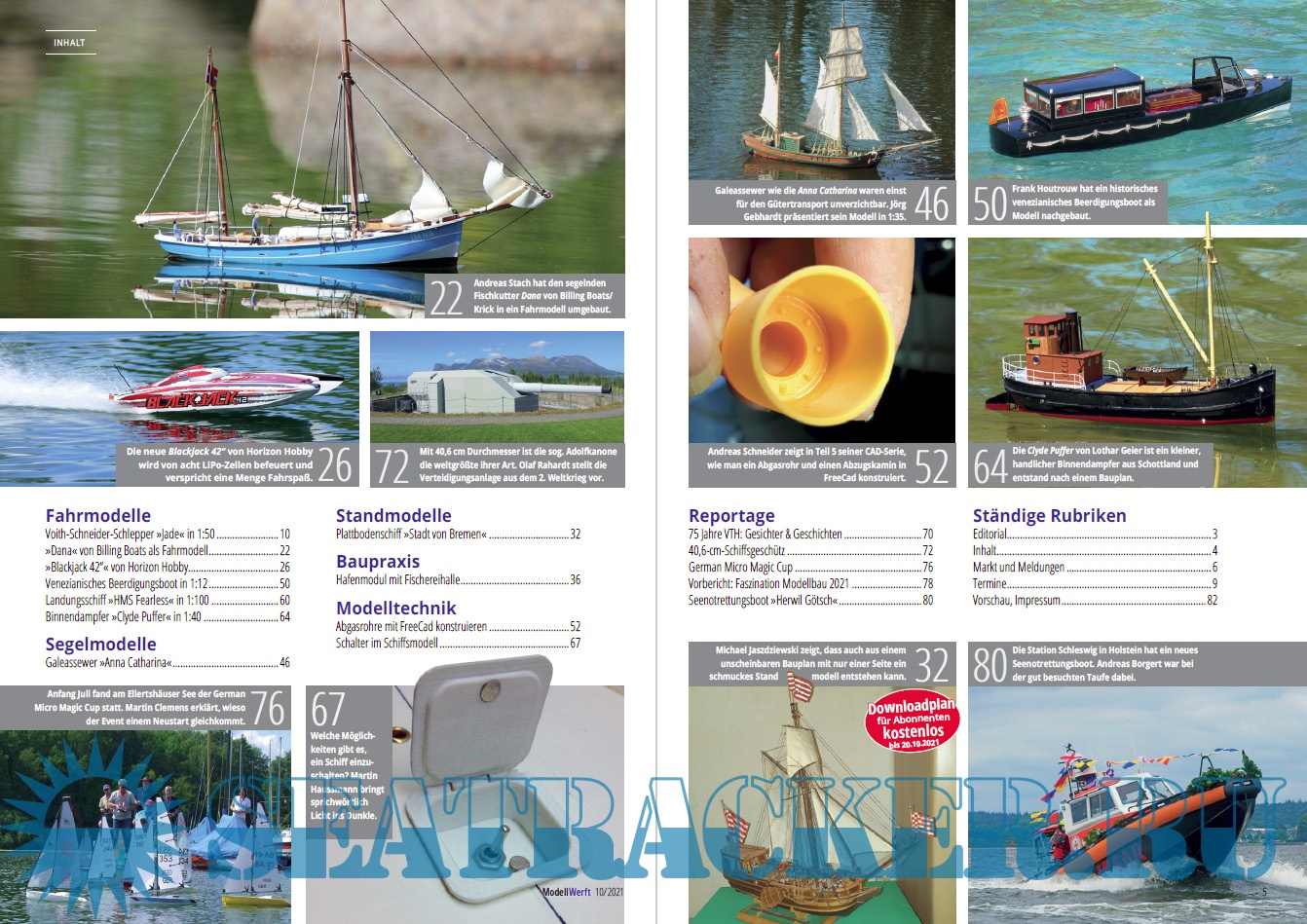 Year: 2021 Language: German Author: Eric Schafenrort (Redaktor) Genre: Periodical publication Edition: 2021-10 Format: PDF Quality: eBook Pages count: 84 Description: Das führende Fachmagazin für Schiffsmodellbauer. Egal ob Stand- oder Fahrmodell, ob kleines Segelboot oder gigantisches Kreuzfahrtschiff. Die Modellwerft informiert über Neuheiten, hilft mit Bautipps und fasziniert mit besonderen Reportagen.