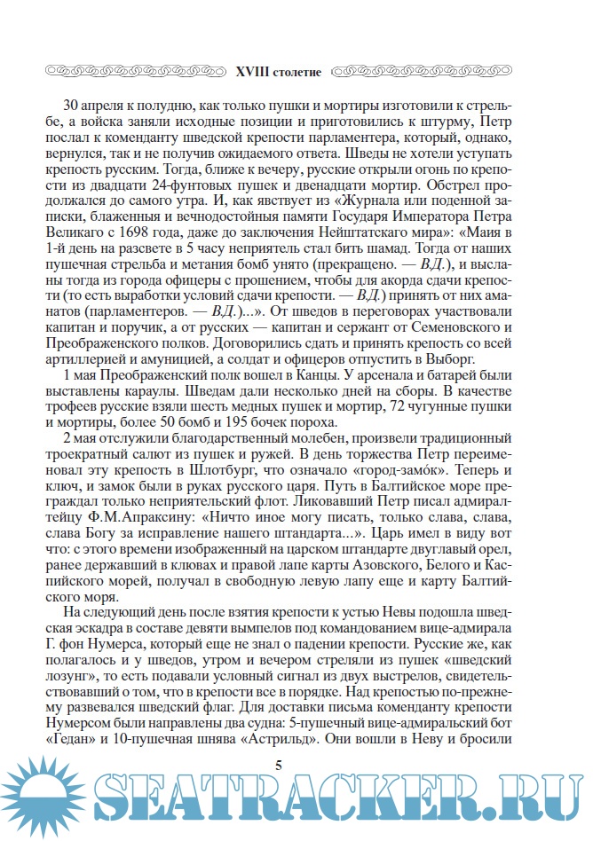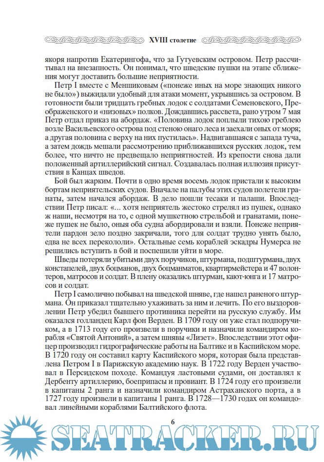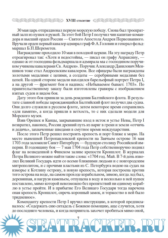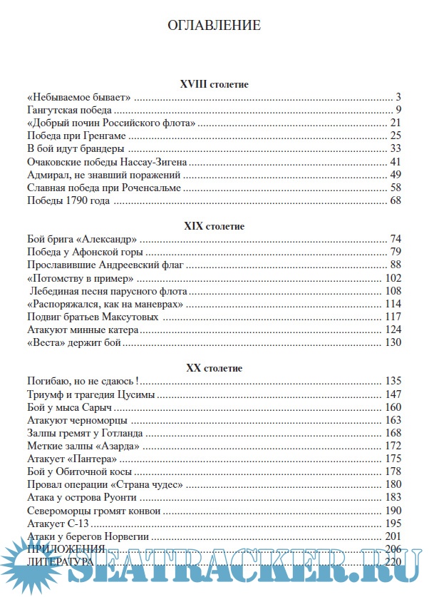 Описание: Книга посвящена наиболее крупным морским сражениям Российского флота, развитию военно-морского искусства, флотоводческой деятельности императора Петра Великого, адмиралов Г.А.Спиридова, С.К.Грейга, Ф.Ф.Ушакова, П.С.Нахимова и др.