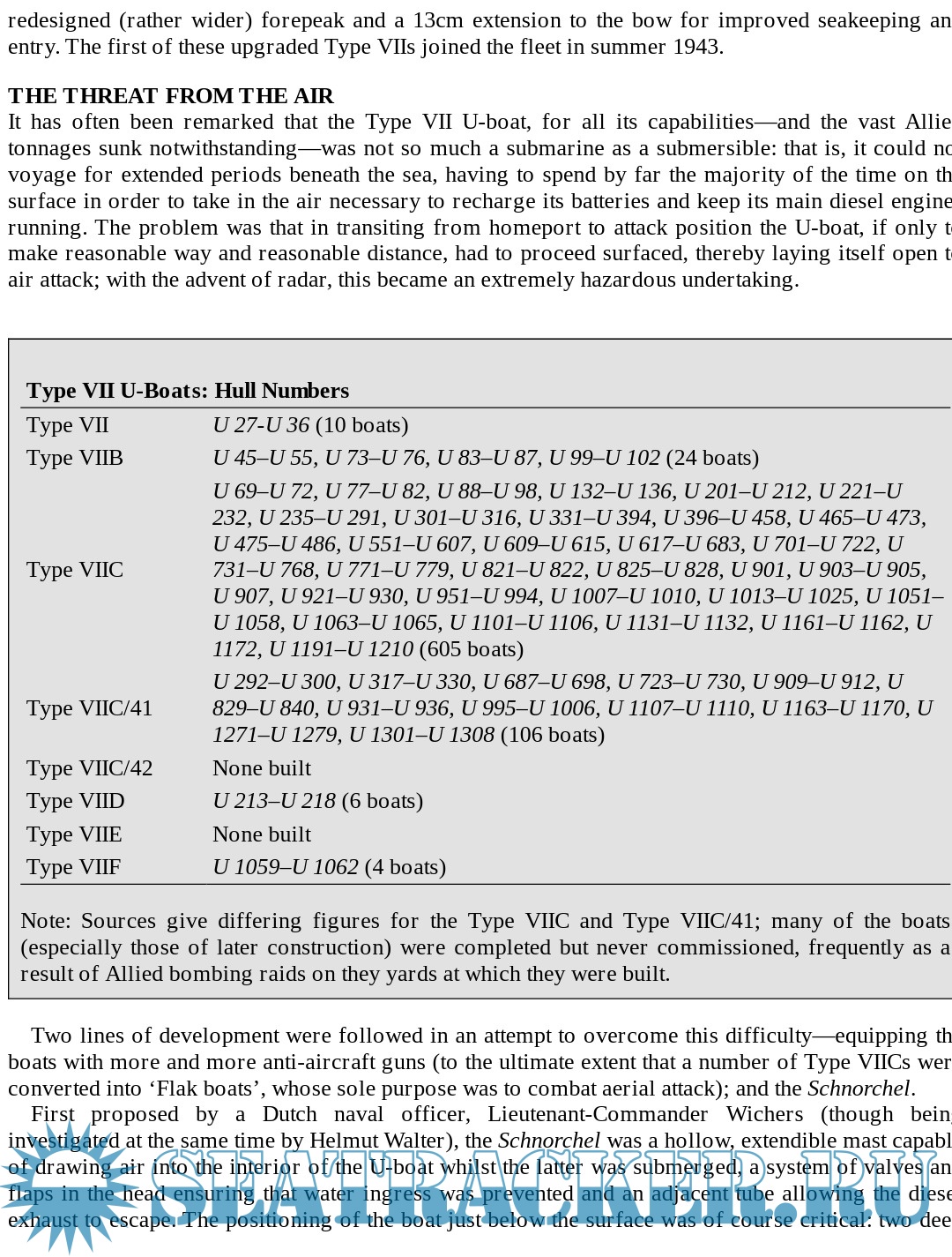 Year: 2012 Language: English Author: Chesneau R. Genre: Historical Publisher: Chatham Publishing Format: PDF, EPUB Quality: eBook Pages count: 101 Description: The fourth volume in a new series providing in-depth information about building and modifying model kits of famous warship types. This volume is devoted to the Type VII, the standard German sea-going submarine that in many versions and variants was built in huge numbers right through World War II and did more than any other weapon to threaten Allied victory.