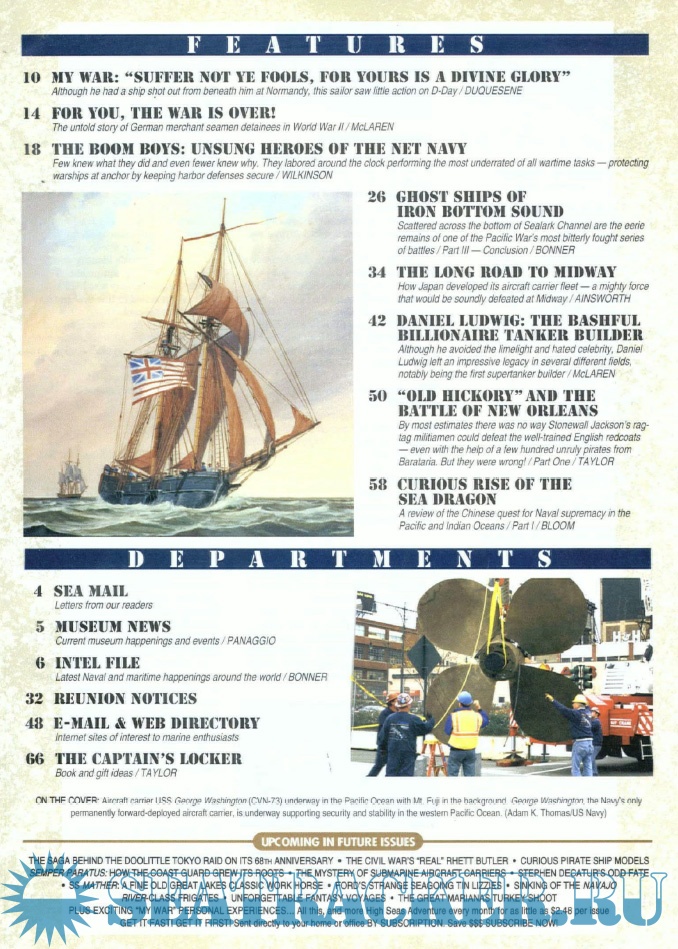 Description: Read about the world’s major sea battles and first-hand accounts from the men who fought and lived through them. From the early days of sailing vessels to the post-Cold War nuclear navies of today, Sea Classics has it all.