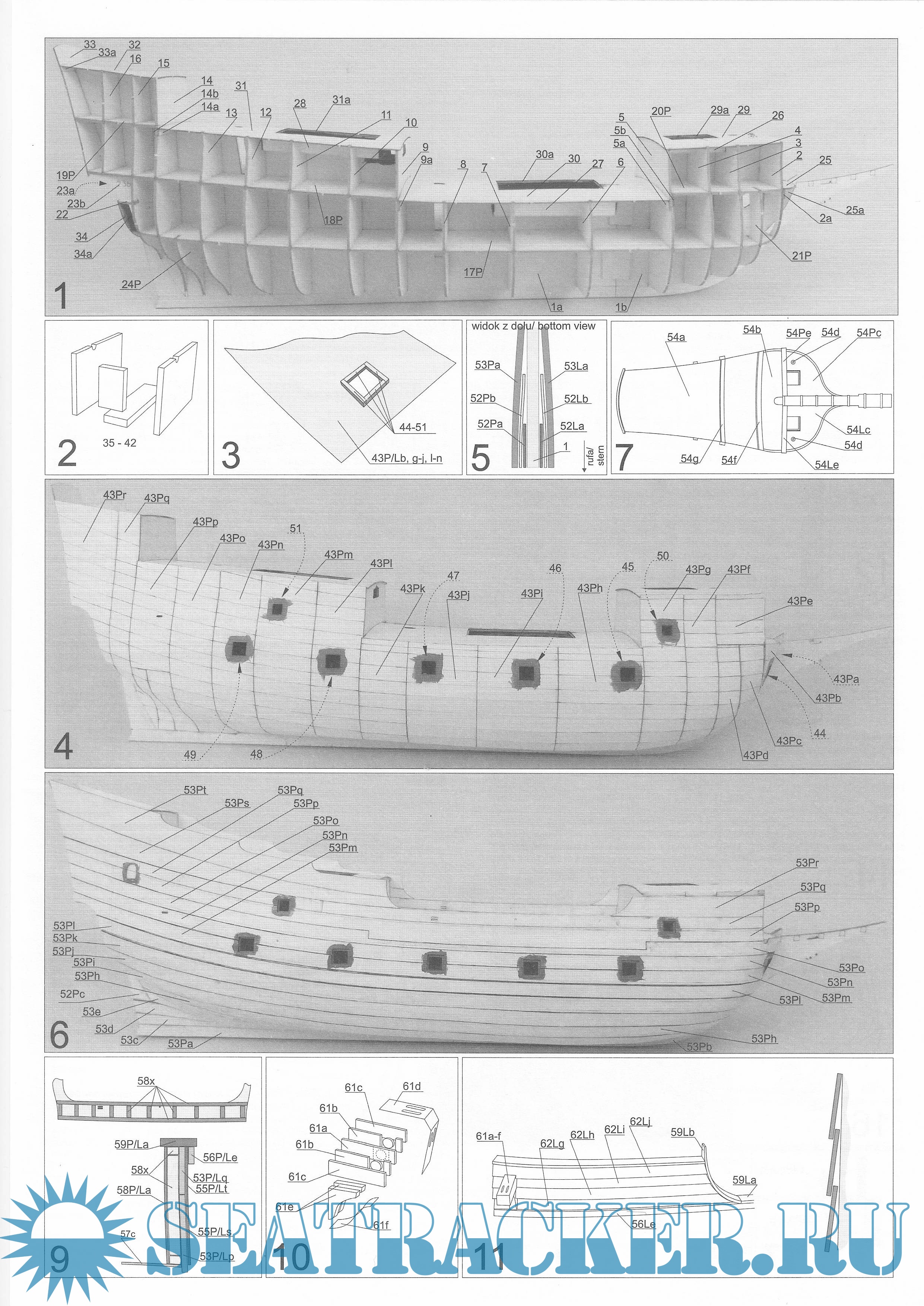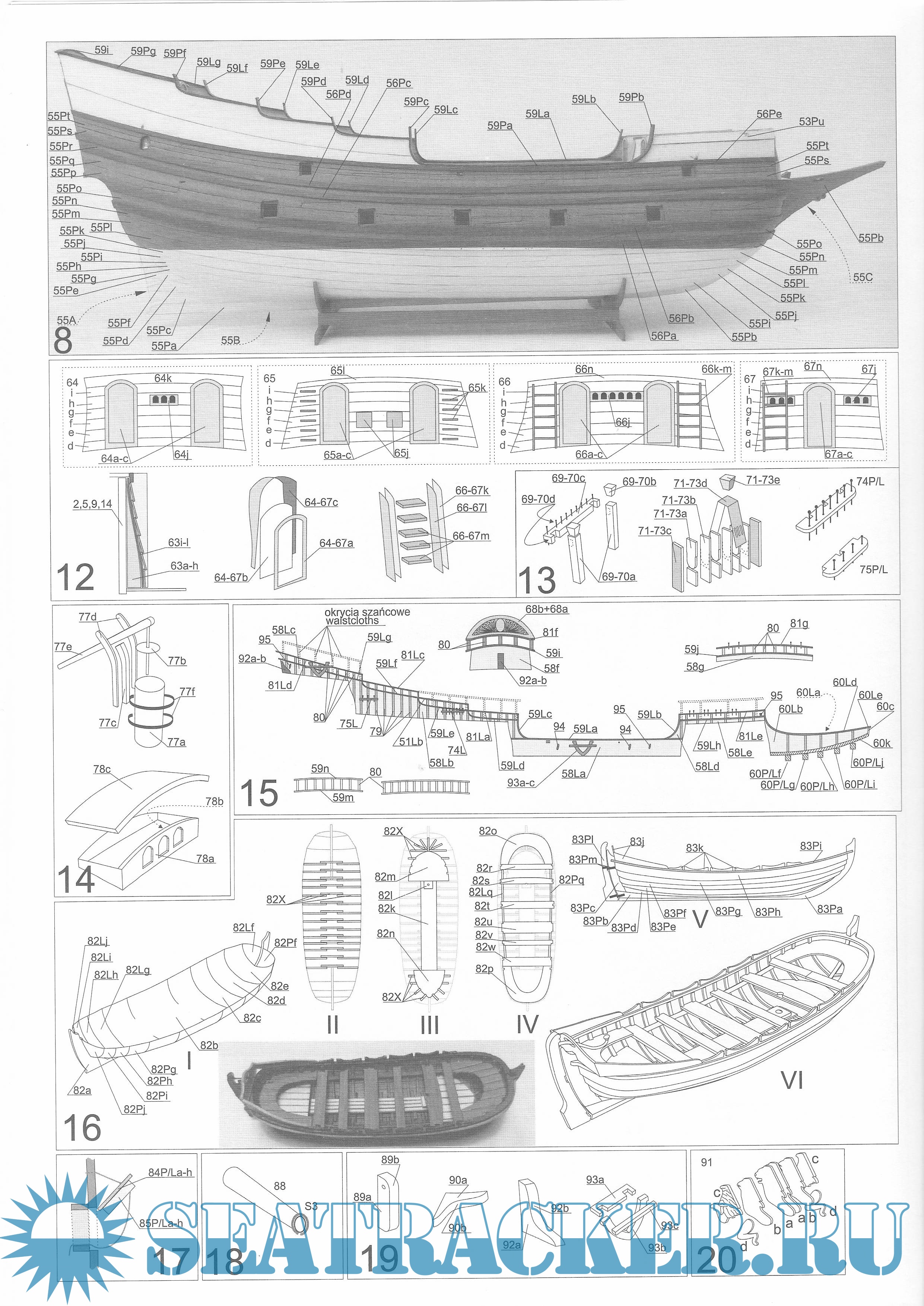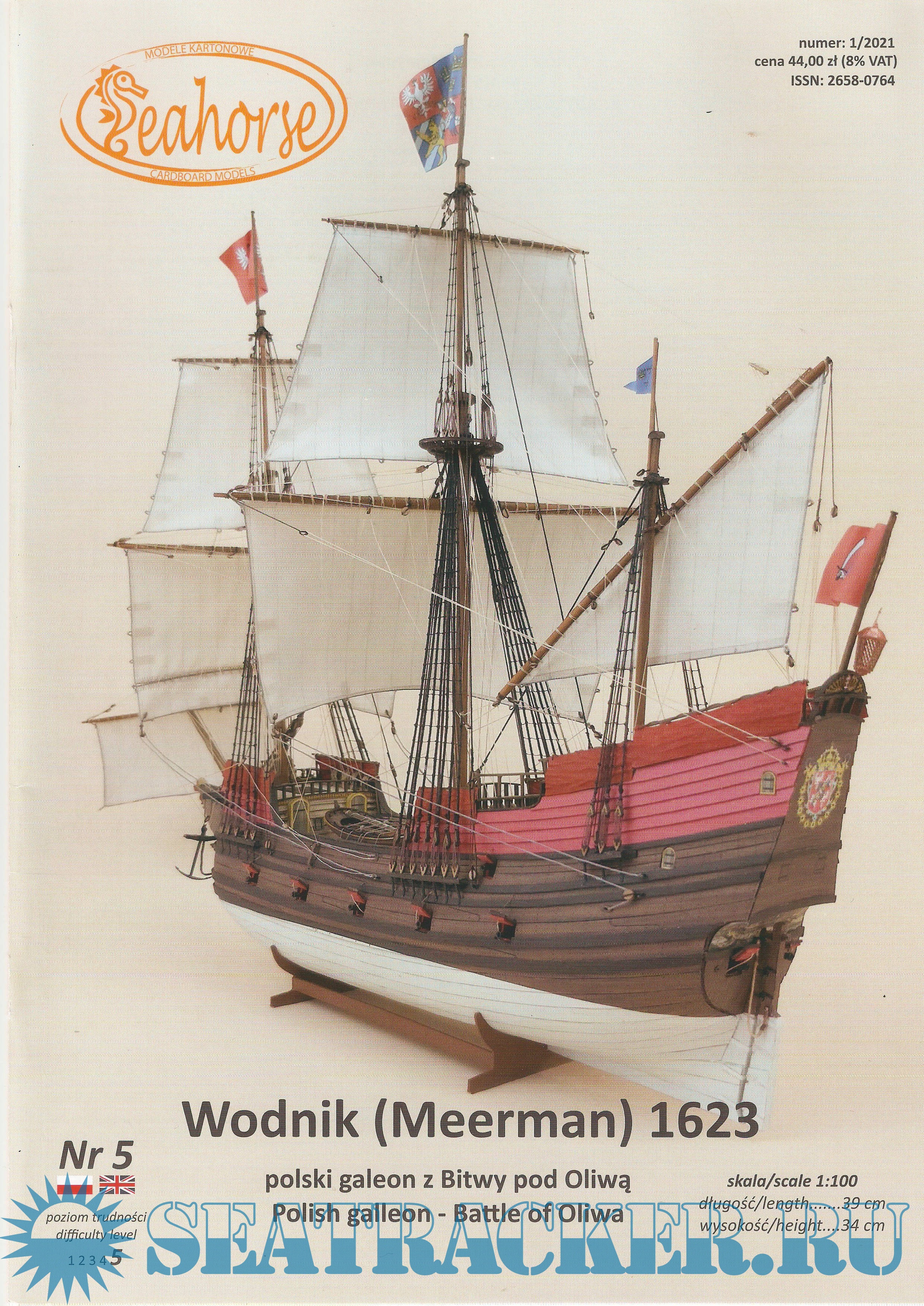 22 листа цветных выкроек и инструкций для изготовления бумажной модели польского галиона Wodnik (Meerman) 1623 год