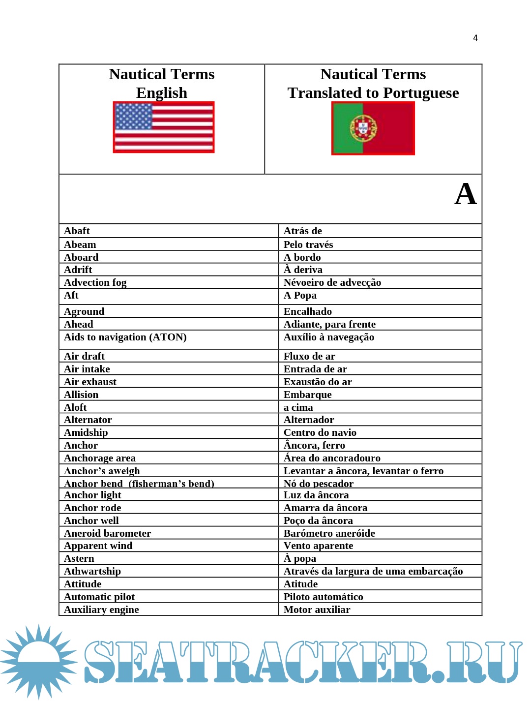 Glossary of Nautical Terms (EN – PT,PT – EN)