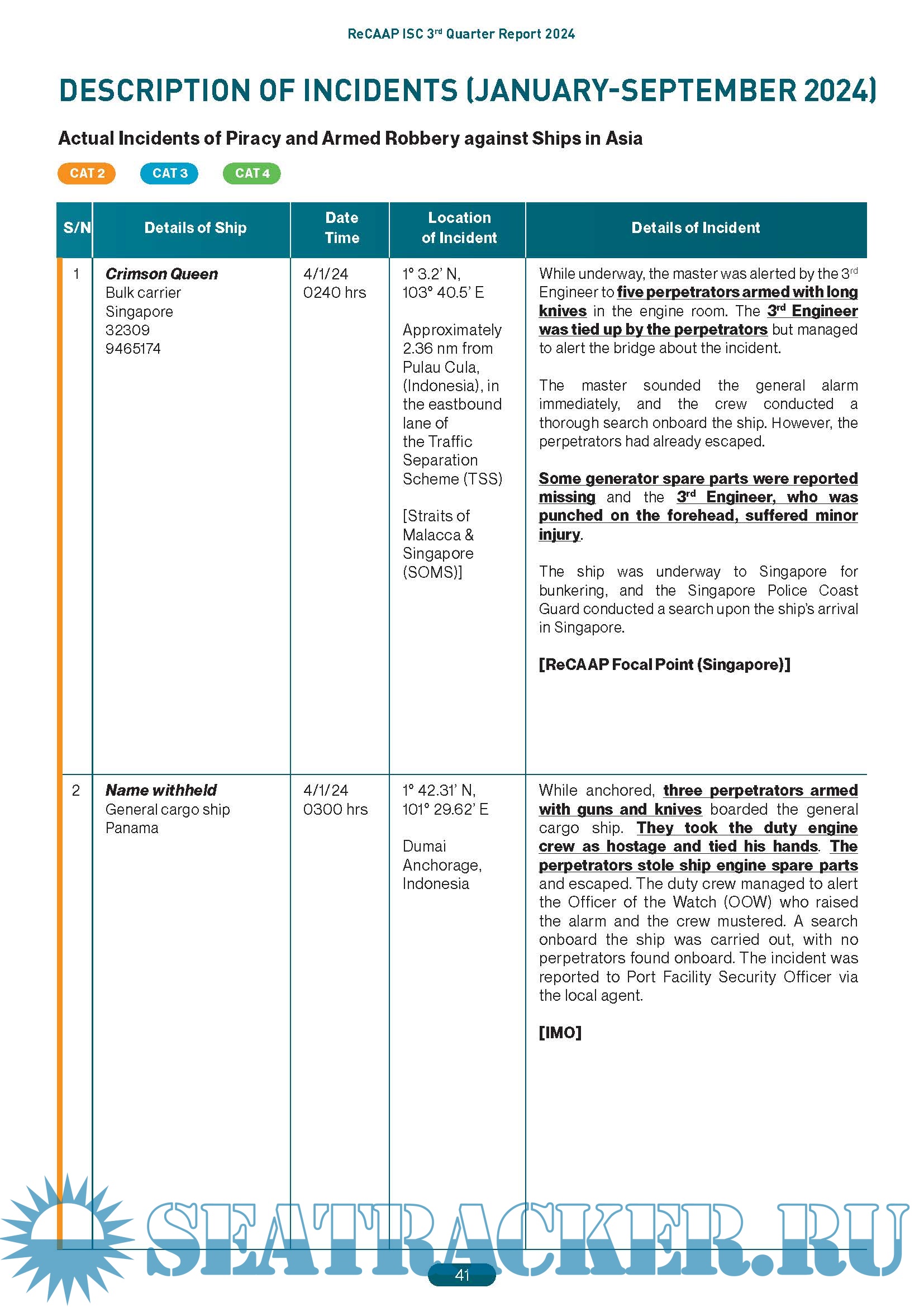 Piracy & Armed Robbery against Ships in Asia Reporting of Incidents - Contact Details - ReCAAP…