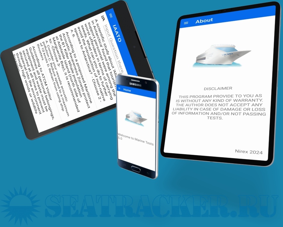 Year: 2024 Version: 5.0 Developer: Nirex Platform: Android Localization: English Crack: Not needed Description: A collection of answers to marine tests: Сборник ответов на тесты для моряков - CES 4.1 - CES 5.0-6.0 - Sets 6000 - Examiner / Crew 2002 - SEEMP (Ship Energy Efficiency Management Plan) - Marlins eLearning В программе содержится полная база ответов с поиском по коду и по части вопроса. The program contains a complete database of answers with the search code and part of the question. Additional info: Это программа шпаргалка, создана для помощи в прохождении тестов. Работает все просто, в тестах CES и SETS каждому вопросу присвоен свой уникальный код, который и надо вводить. В других тестах поиск происходит по части вопроса. При запуске программы вся база ответов не загружается в память, потому что это больше 30 000 строк, представте как будет притормаживать телефон или планшет при работе с таким массивом данных :) Поэтому при запуске программы Вы не видите ответов, они появятся только после поиска.Например, при сдаче SETS, в правом верхнем углу будет номер вопроса HMS1000000000007745. В поисковую строку достаточно ввести 45 и получите все ответы код вопроса которых содержит 45, для более точного поиска необходимо ввести 7745. Короче, чем конкретнее условие поиска - тем точнее будет поиск. You may direct thank to Developer with opening link above