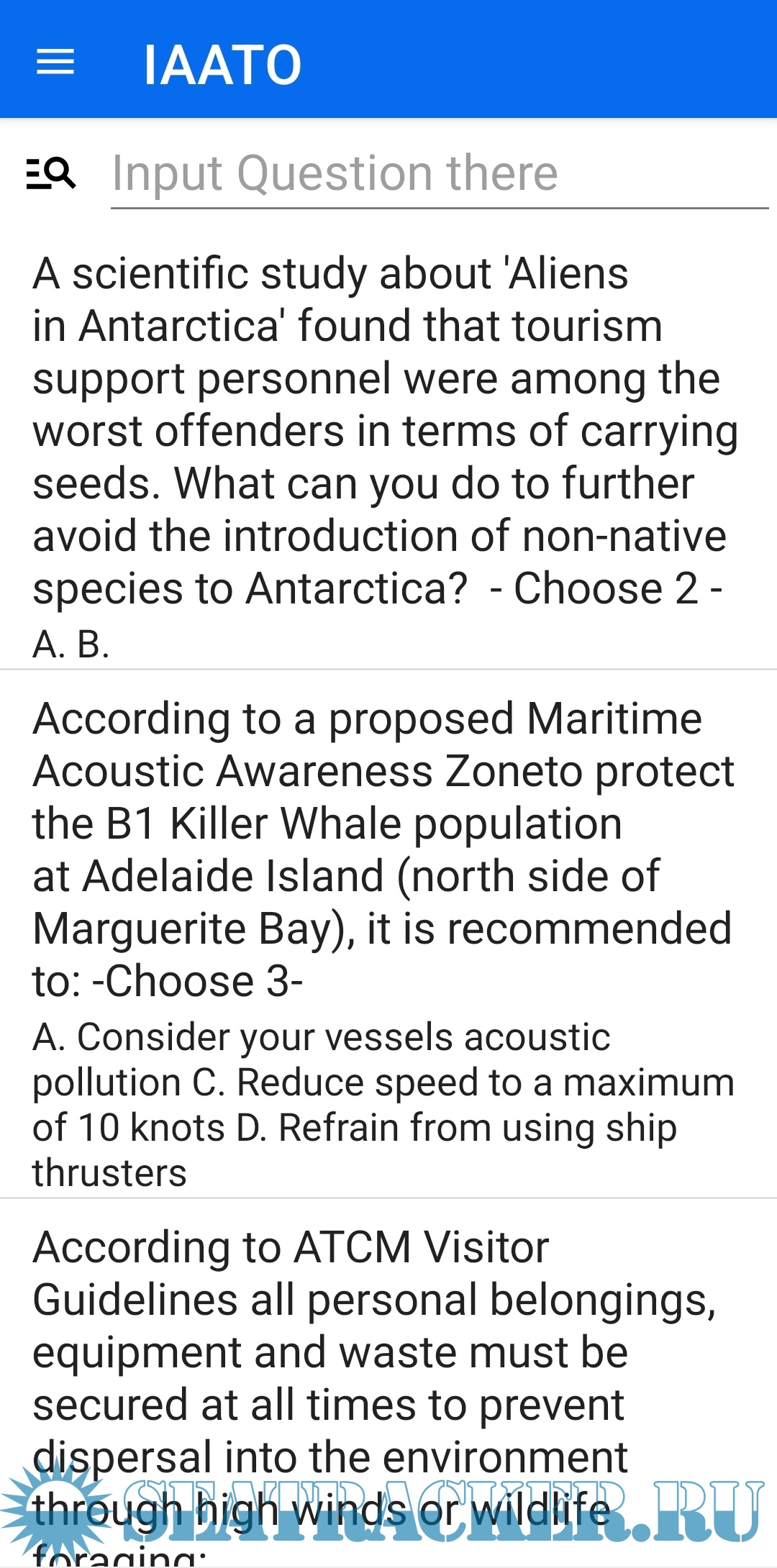 - добавлены дополнительные ответы на тест IAATO (только раздел for Marines)