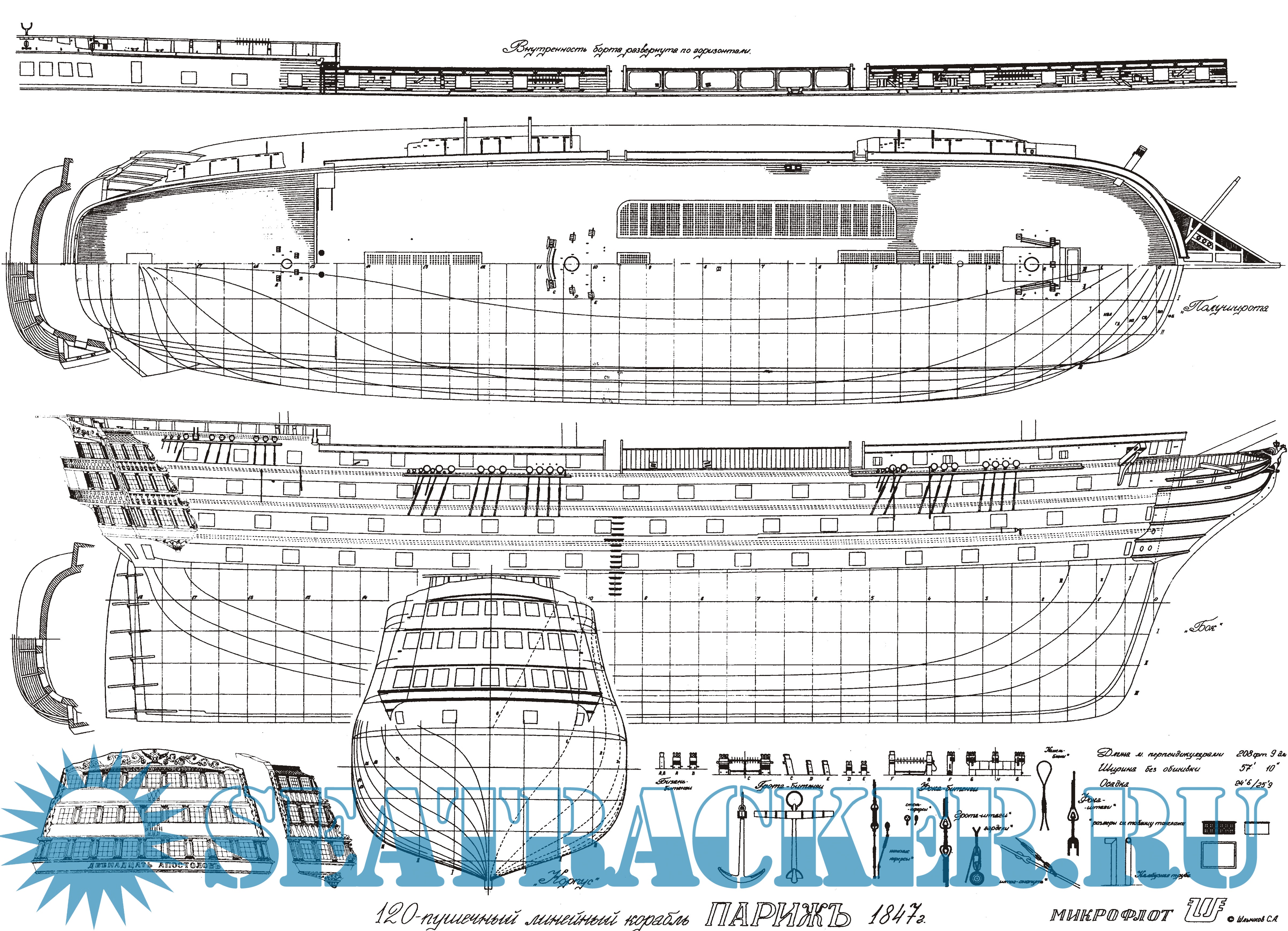 7 листов чертежей линейного корабля ''Париж'' 1847 год