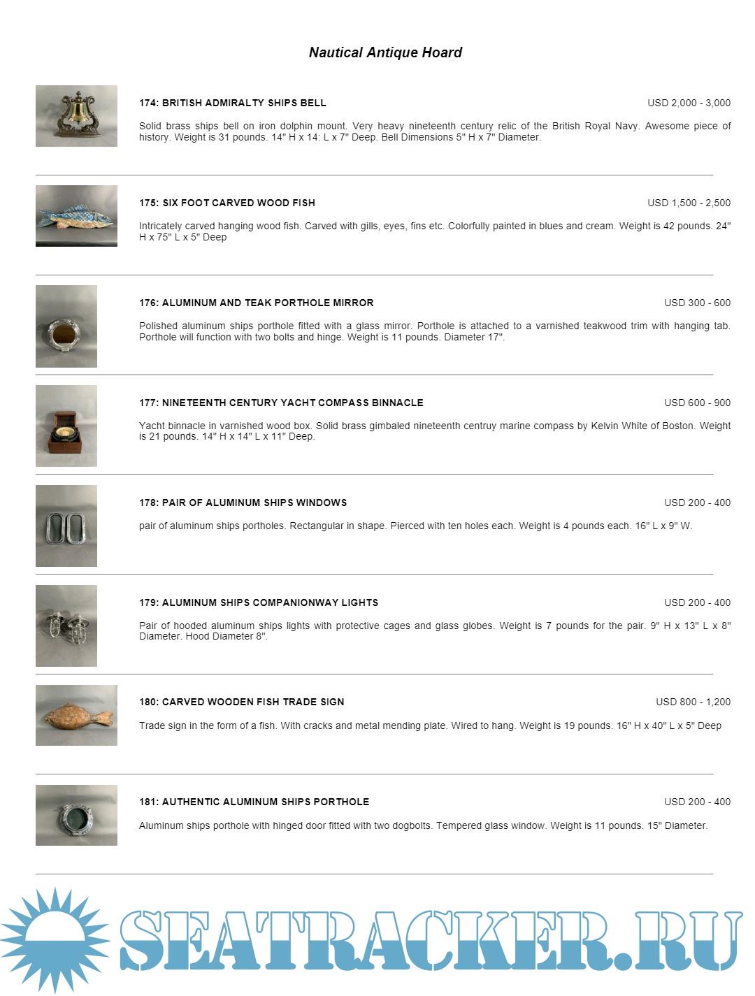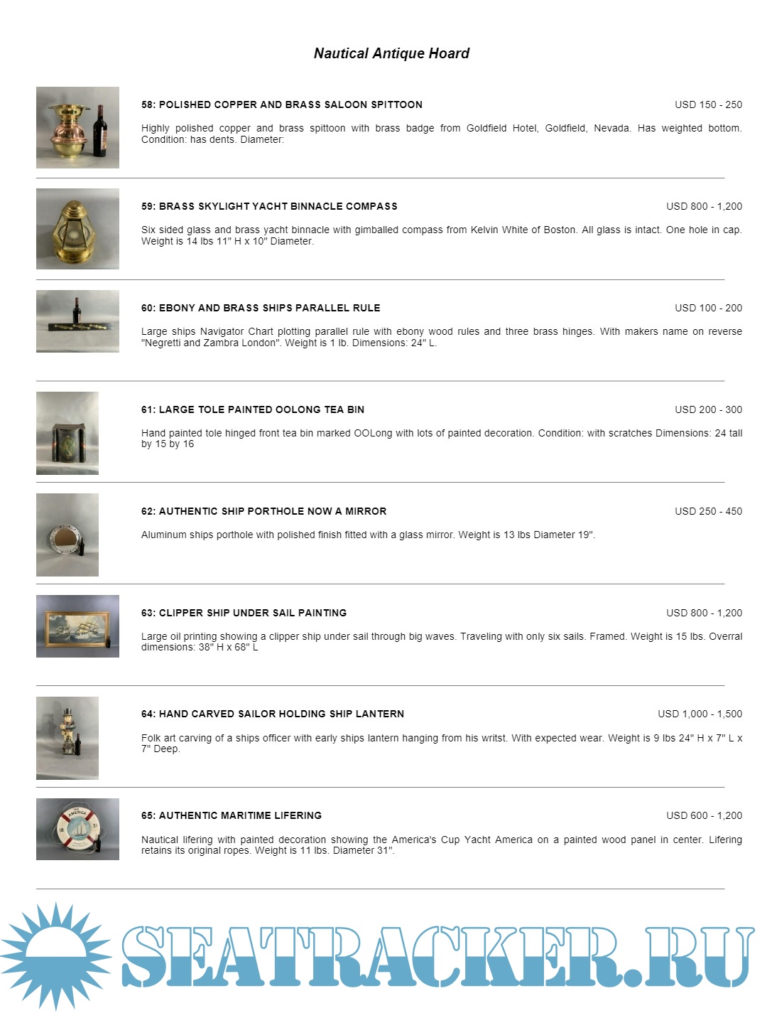 Description: Boston Harbor Auctions Nautical Antique Hoard Catalogue, July2021