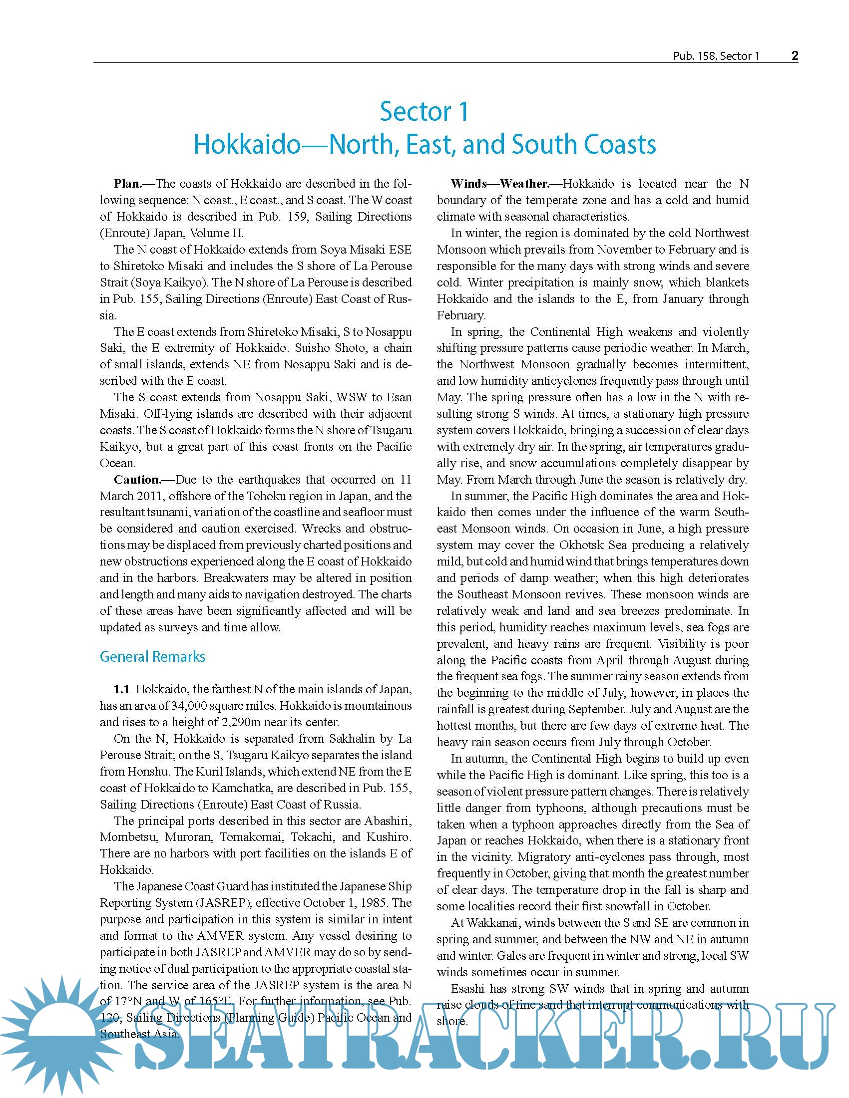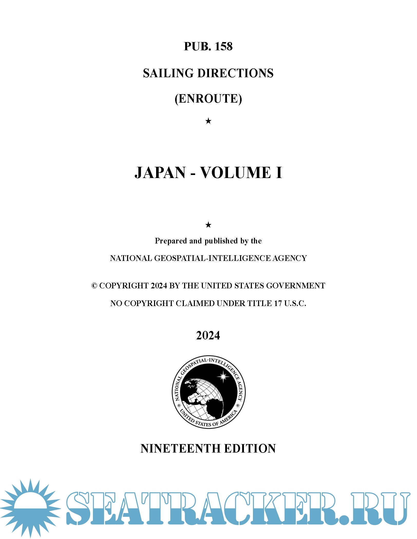 US Pub. 158 Sailing Directions (Enroute) Japan, Volume I