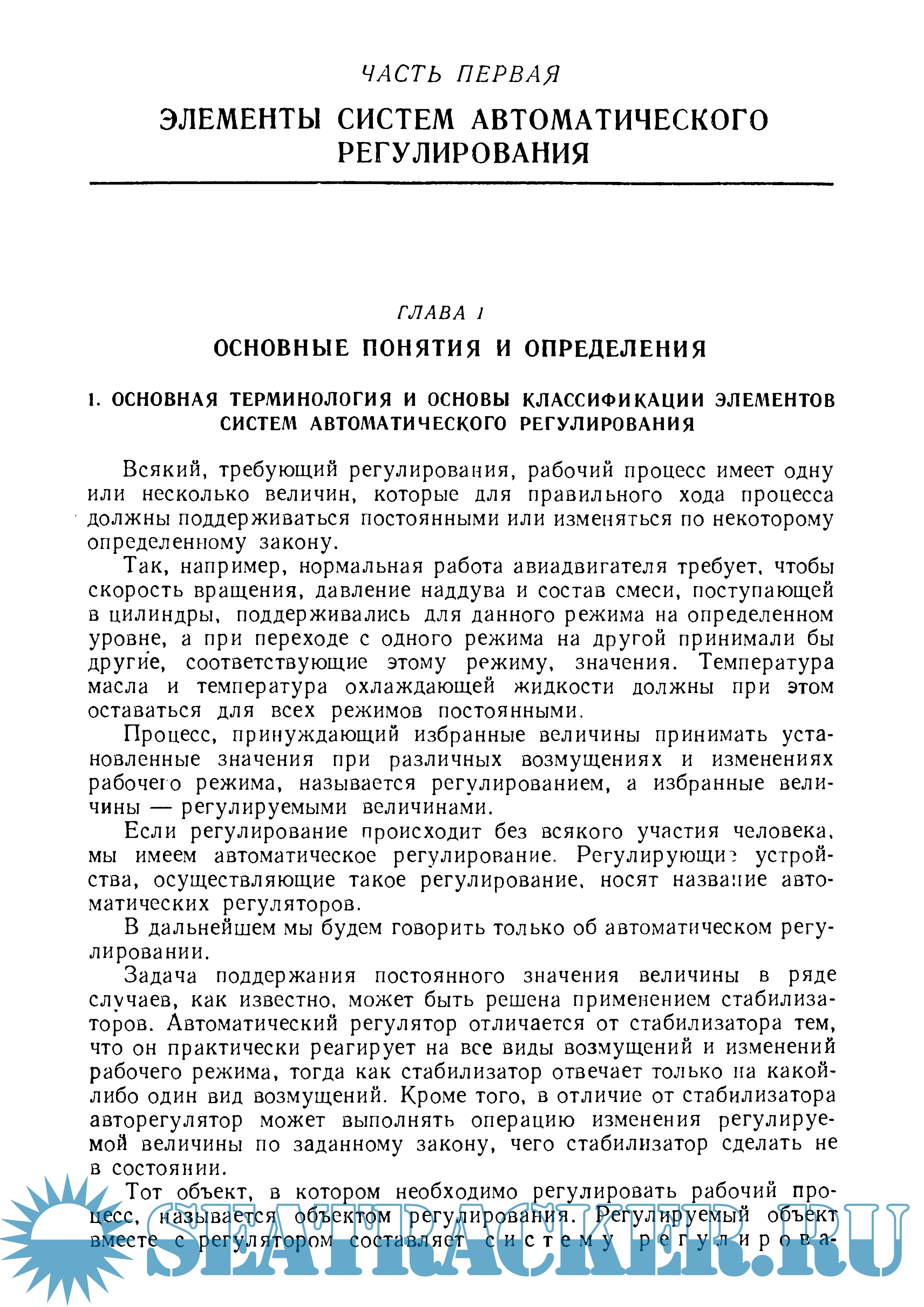 Первая часть книги посвящена статике систем регулирования и описанию основных принципиальных схем и их элементов. Кроме того, рассмотрены вопросы терминологии и классификации систем автоматического регулирования и изложены особенности различных объектов регулирования.
