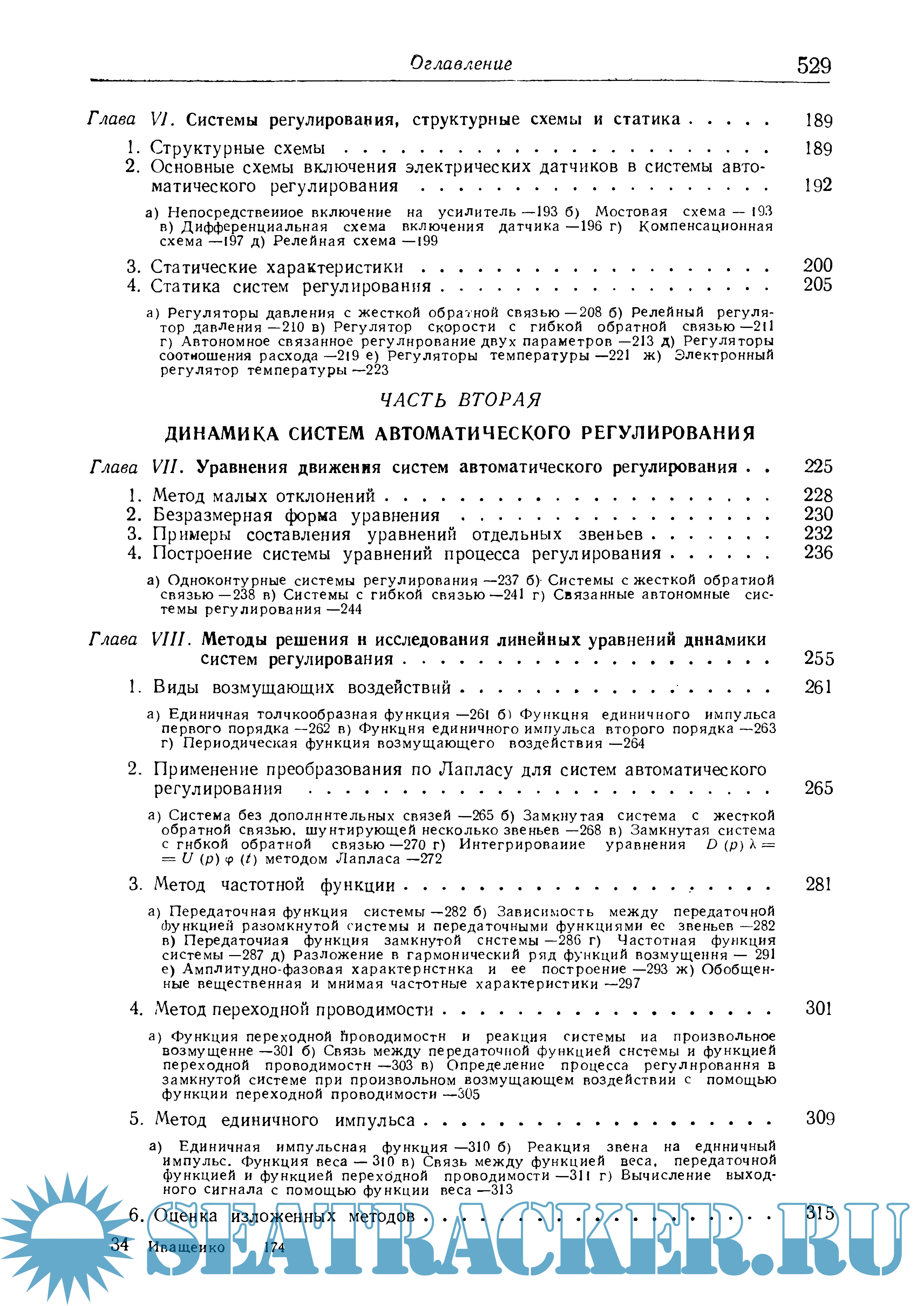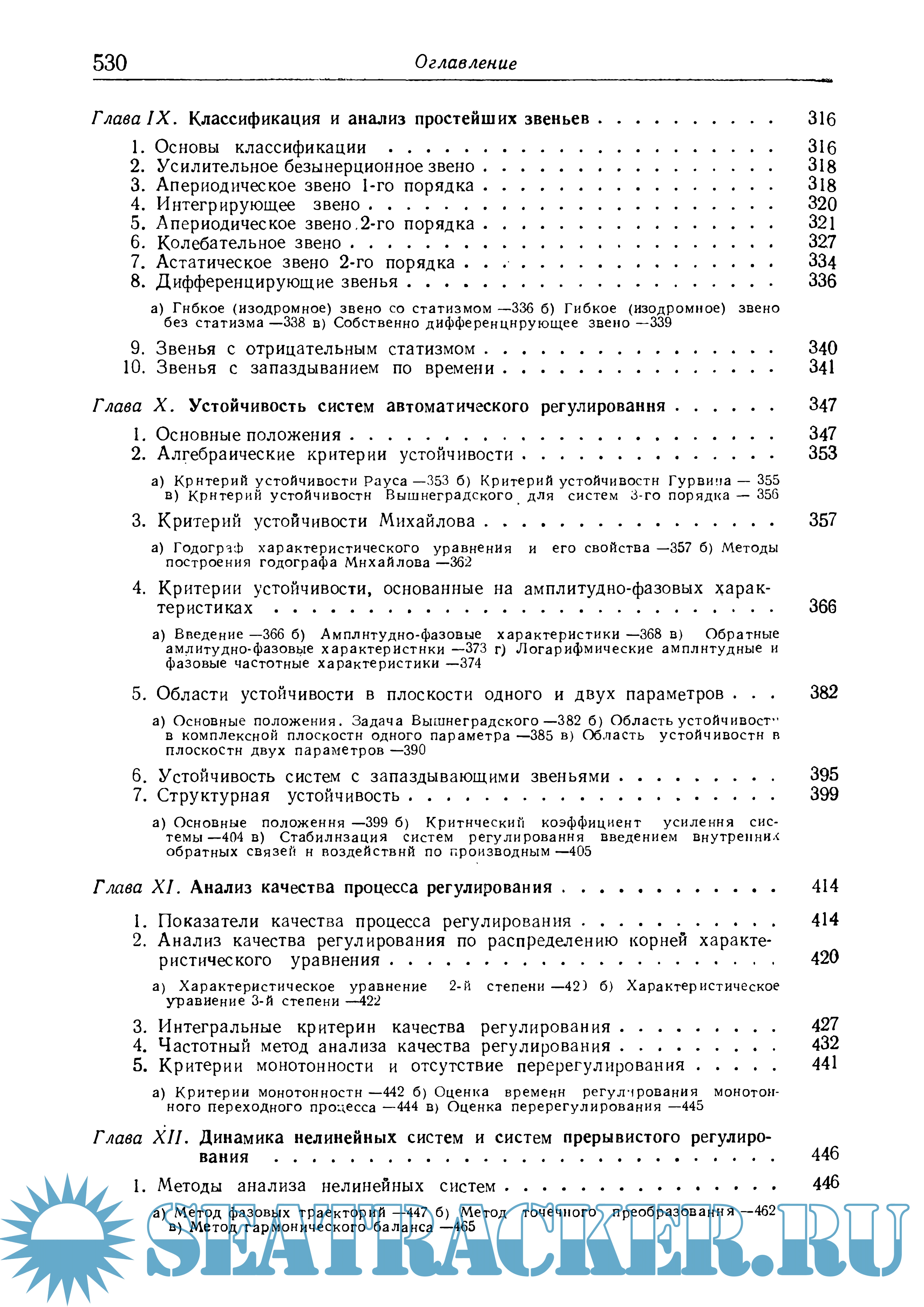 Вторая часть посвящена современным методам, применяемым для решения различных вопросов, связанных с переходными режимами систем регулирования, устойчивостью этих систем и анализом качества регулирования.