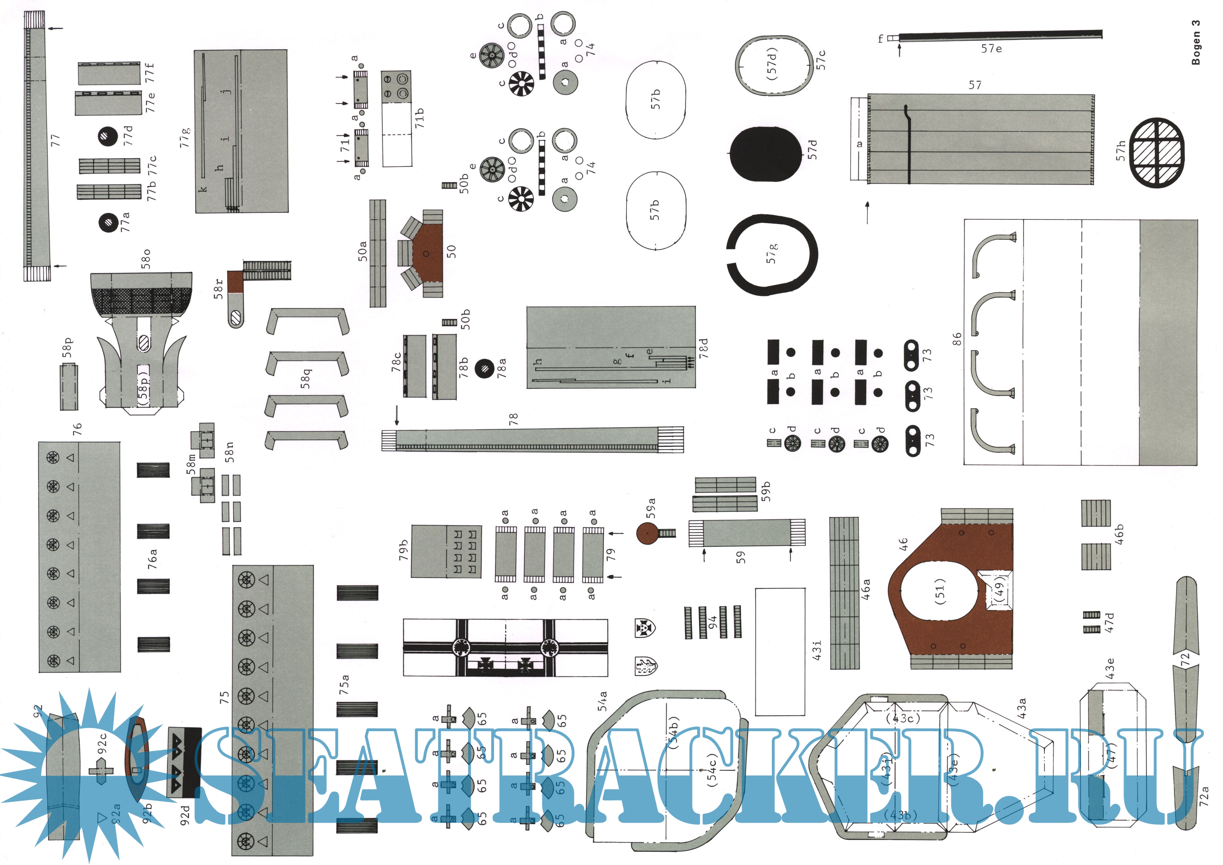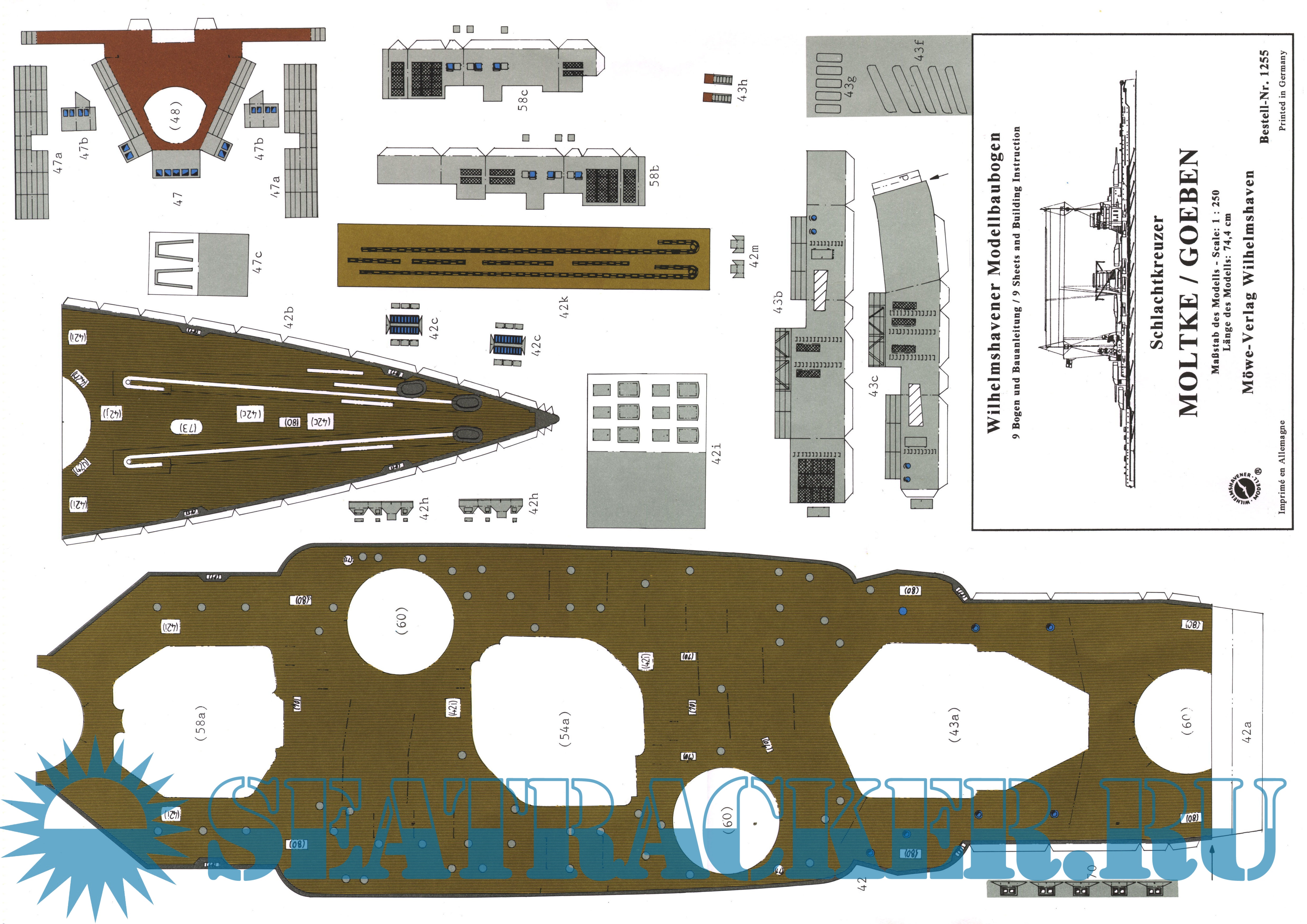 12 листов цветных выкроек для изготовления бумажной модели линейного крейсера Moltke или Goeben