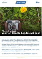 The magazine also covers some very informative articles on carbonization and bio- fouling. In addition, we have included two poems showcasing viewpoints from the poets' imaginations as well as the amazing winning images from the Photo competition that encapsulate the essence of women in leadership roles at sea.