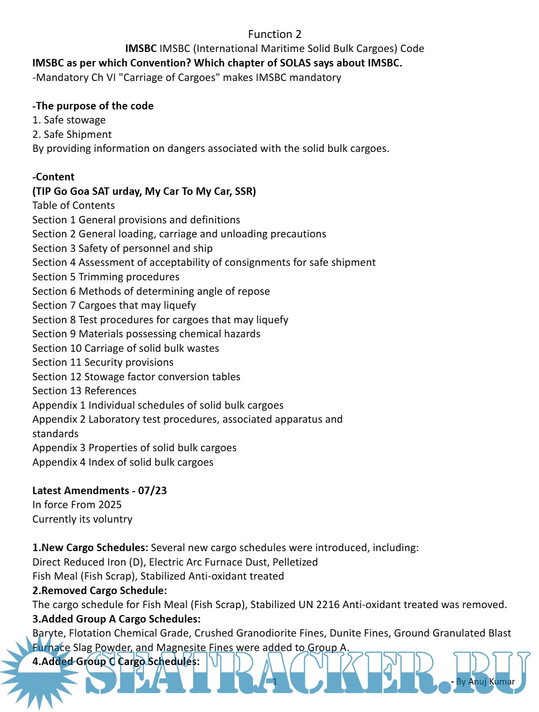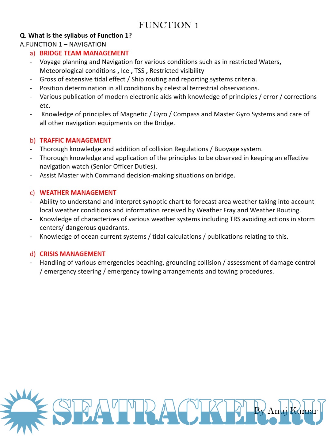 Oral Notes (Function: 1,2&3) for Chief Mate F.G. Mercantile Marine Department (MMD), India Examinations