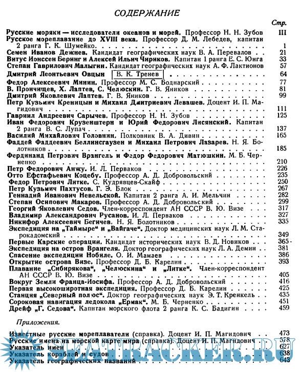Описание: Русские мореплаватели-исследователи океанов и морей, Русское мореплаватели до XVIII века, Семен Иванов Дежнев, ВитусИонссен Беринг и Алексей Ильич Чириков, Степан Гаврилович Малыгин, Дмитрий Леонтьевич Овцын, Федор Алексеевич Минин, В. Прончищев, Х. Лаптев, С. Челюскин, Дмитрий Яковлевич Лаптев, Петр Кузьмич Креницын и Михаил Дмитриевич Левашев, Гавриил Андреевич Сарычев, Иван Федорович Крузенштерн и Юрий Федорович Лисянский, Василий Михайлович Головнин... Известные русские мореплаватели, Русские имена на морской карте мира, Указатель имен, Указатель кораблей и судов, Указатель географических названий. Портреты, карты, карты - раскладки, илл, рисунки, корабли.