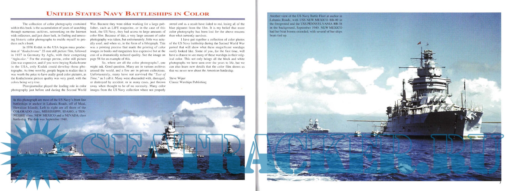 Description: OUT OF PRINT ! When these are gone - that's it ! No More ! . Warship Pictorial 34 - USN Battleships in Color by Steve Wiper Publisher : Classic Warships Available : July 2010 ISBN : 978-0-9823583-5-1 Never before has any book been published containing photographs of all of the US Navy battleships that fought during the Second World War in original period color photographs. It took many years of collecting these historic color images to complete this book. Most of the photos have never been previously published and those that have, not to the level of quality provided in this book. For the first time, one will have a view of what these magnificent warships looked like in real color. All the photos in this book are historic photos, none are from modern times. WP34 contains 100 color photos within the 72 pages.