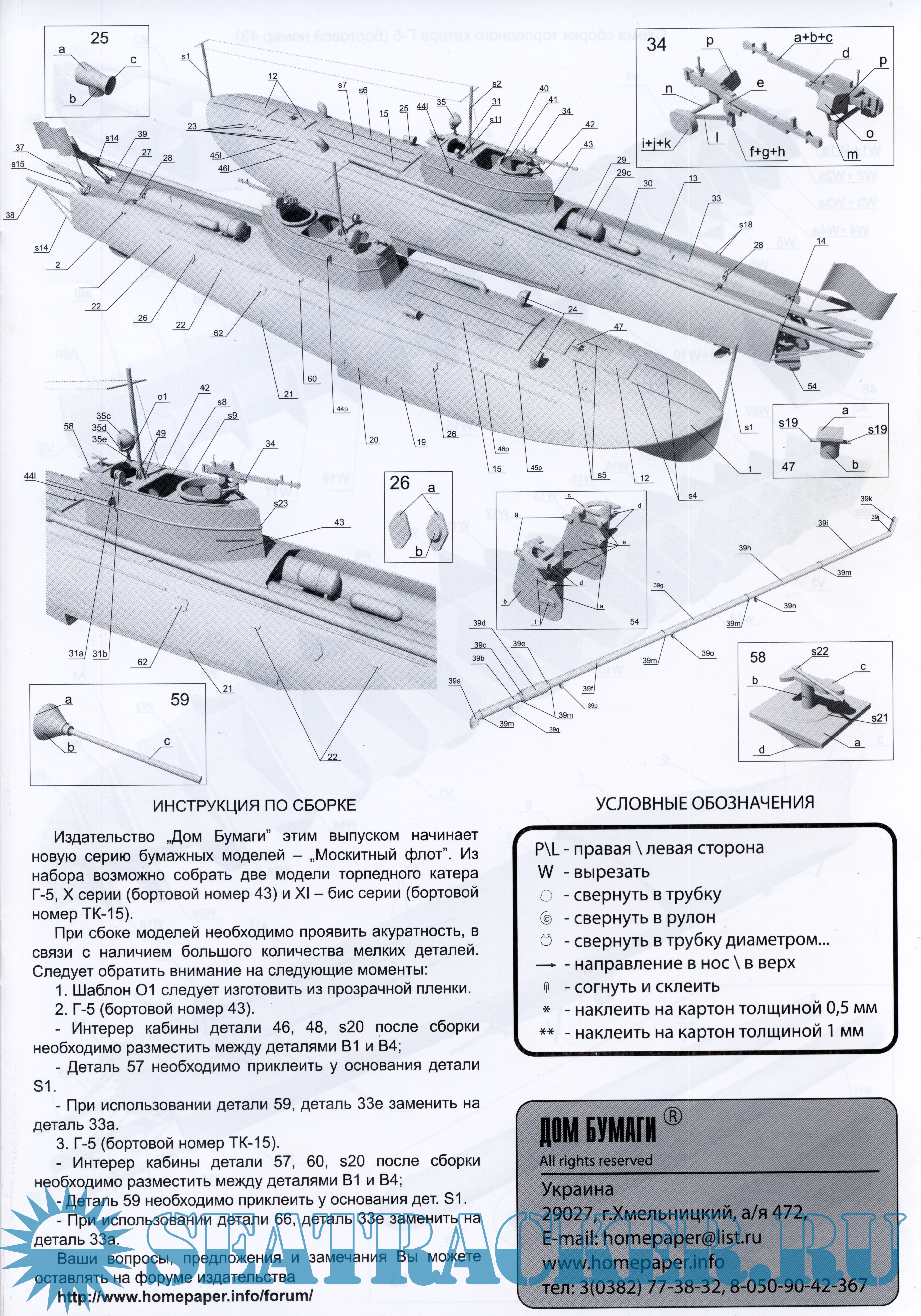 10 листов цветных выкроек и инструкций для изготовления советского торпедного катера ''Г-5'' в масштабе 1:100Скриншоты