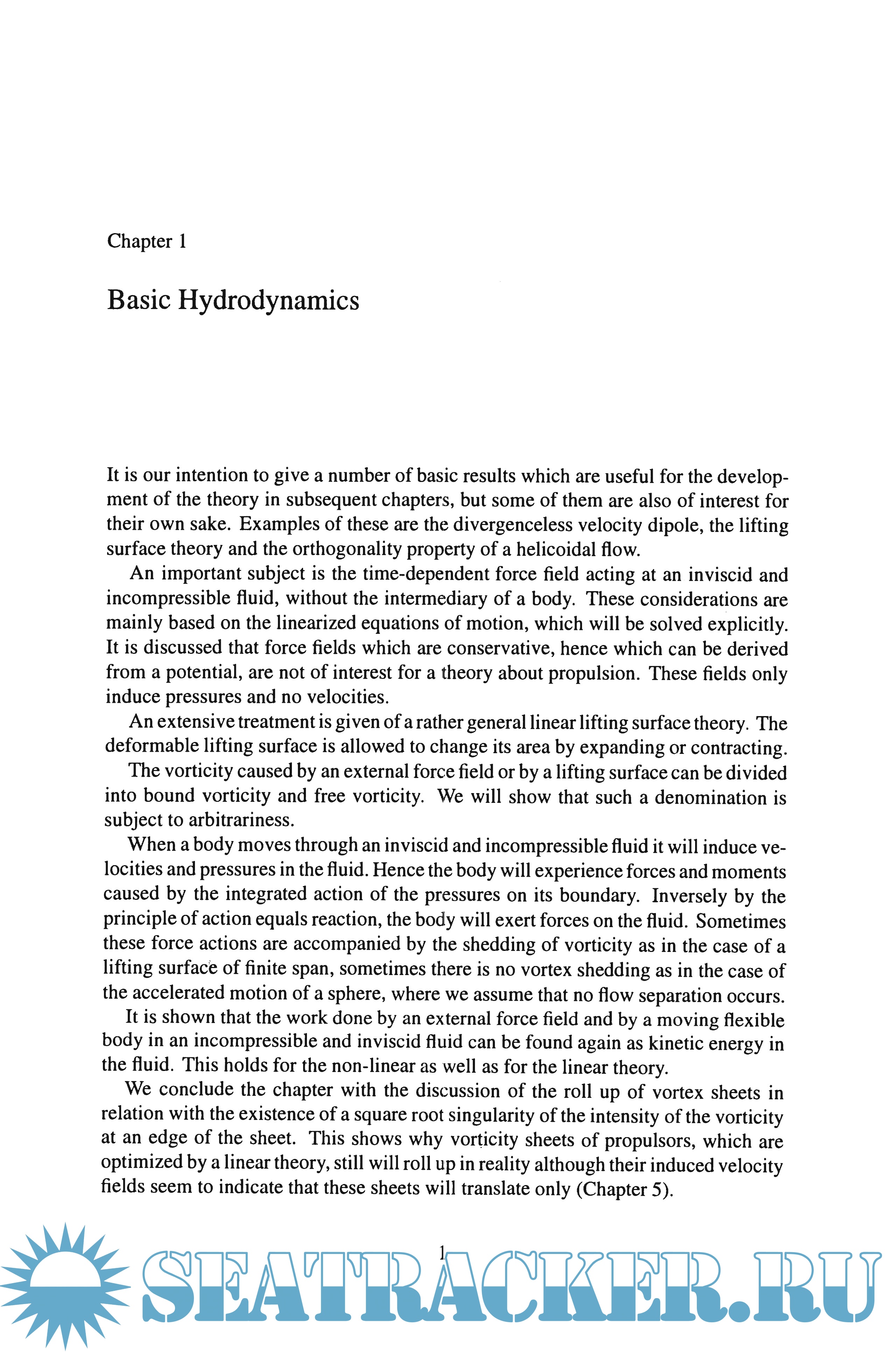 Description: Hydrodynamic propulsion has been of major interest ever since craft took to the water. In the course of time, many attempts have been made to invent, develop, or to improve hydrodynamic propulsion devices. Remarkable achievements in this field were made essentially by experienced individuals, who were in need of reliable propulsion units such as paddle wheels, sculling devices, screw propellers, and of course, sails. The problem of minimizing the amount of input energy for a prescribed effective output was first investigated seriously at the beginning of this century. In 1919, BETZ presented a paper on air-screw propellers with minimum consumption of energy which could be applied to ship-screw propellers also. Next, attempts were made to optimize hydrodynamic propulsion units. Ensuing investigations concerned the optimization of the hydrodynamic system: ship-propeller. The first simple theory of ship propulsion which was presented considered more or less only thrust augmentation, wake processing and modification of propeller characteristics when operating behind the ships hull. This theory has been little improved meanwhile and is still useful, particularly with regard to practical ship design and for evaluating results of ship model tests. However, this theory is not adequate for optimization procedures necessary for high-technology propulsion, particularly for ship propellers utilizing propulsion improving devices such as tip end plates or tip fins at the propeller blades, spoilers in front of the propeller, asymmetrical stern etc.