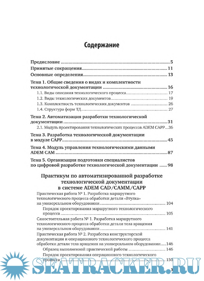 Описание: Пособие предназначено для теоретической подготовки и практического освоения приемов автоматизированной проектной деятельности по разработке технологической документации с помощью интегрированной компьютерной системы отечественной разработки ADEM CAD/CAMM/CAPP. Приведены сведения о видах технологической документации и способах автоматизированного проектирования. Разобраны примеры выполнения различных типовых действий при сквозном автоматизированном проектировании в цифровом режиме. Использован способ «компьютерного инжиниринга» при разработке конструкторской документации. Отражена последовательность действий при разработке технологической документации. Подробно рассмотрены примеры проектирования конструкторской и технологической документации для механической обработки детали на универсальном оборудовании и станках с ЧПУ. Содержатся образцы выполненных работ и задания для самостоятельного проектирования, а также методические рекомендации по организации учебного процесса. В приложения включены справочные данные для пользователя компьютерной системы. Соответствует требованиям ГОСТ ЕСКД и ЕСТД.