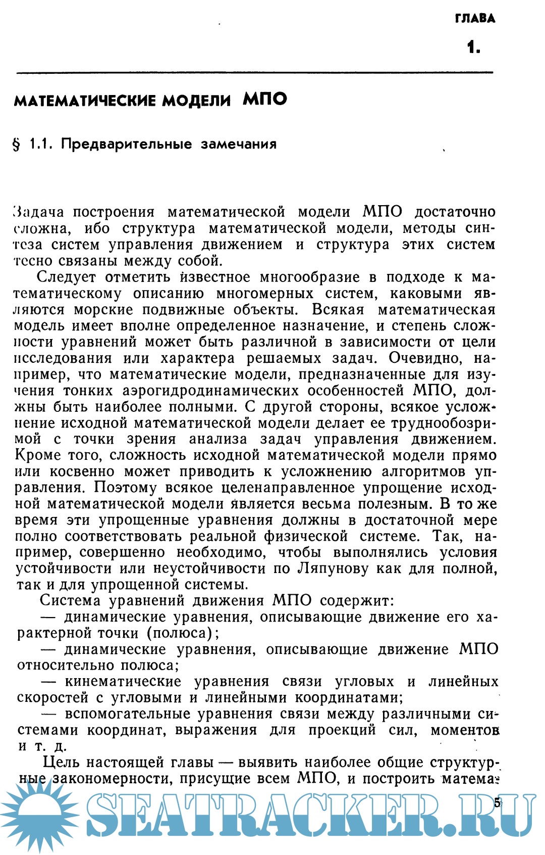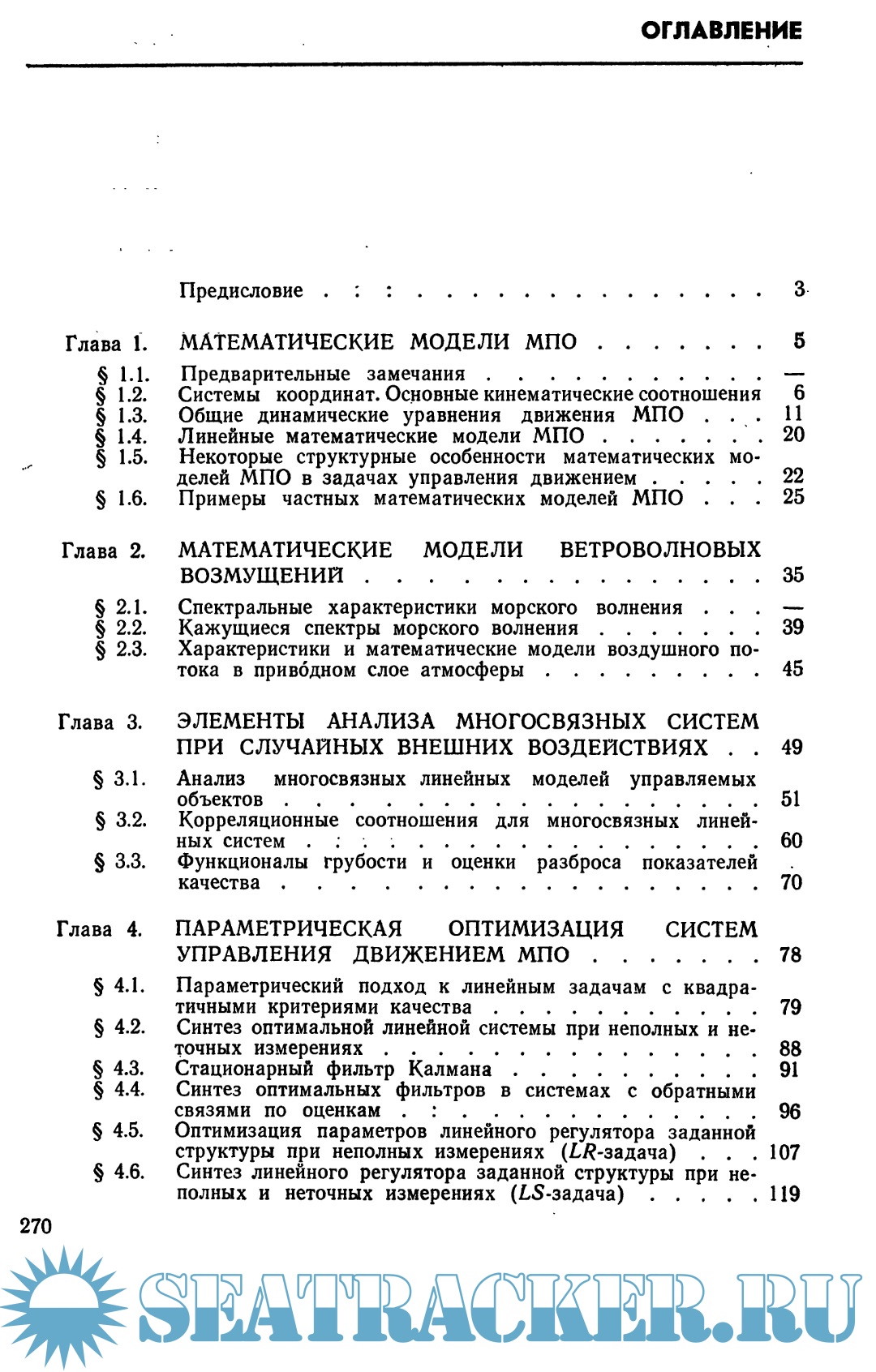 С единых математических позиций рассматриваются нелинейные уравнения движения различных МПО и специфические особенности математических моделей конкретных классов судов и аппаратов. Описываются статистические модели ветроволновых возмущений, действующих на МПО.