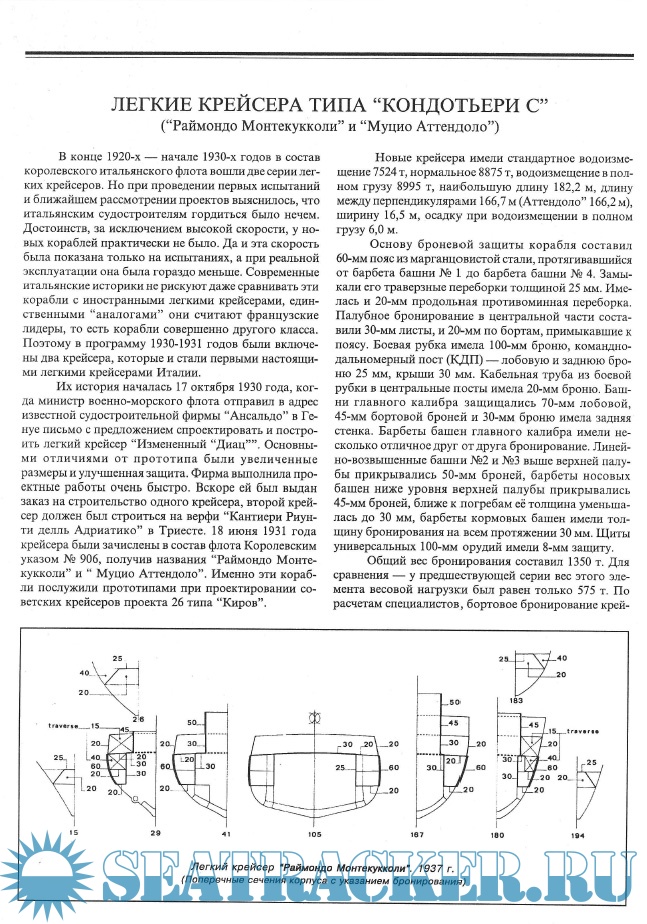 Этот период развития итальянского крейсеростроения представляет особый интерес для нашего читателя, так как советские крейсера типа Киров были ближайшими родственниками крейсеров типа “Раймондо Монтекукколи”.