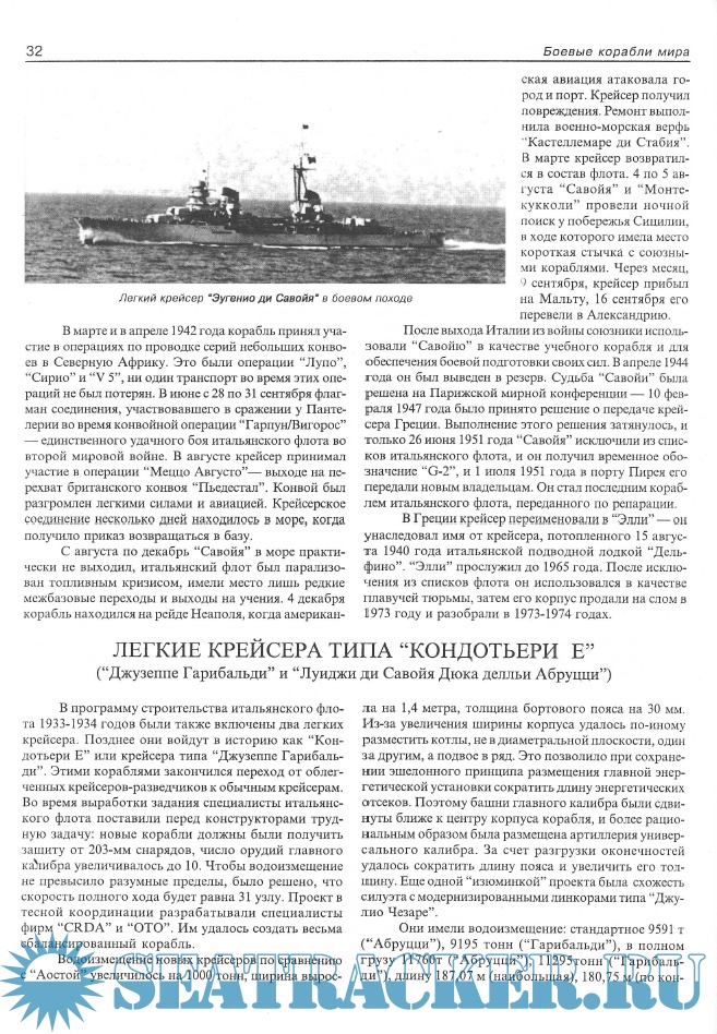 Легкие крейсера Италии 1930-1974 гг. Крейсера типов "Раймондо Монтекукколи", "Эугенио ди Савойя" и "Джузеппе Гарибальди"