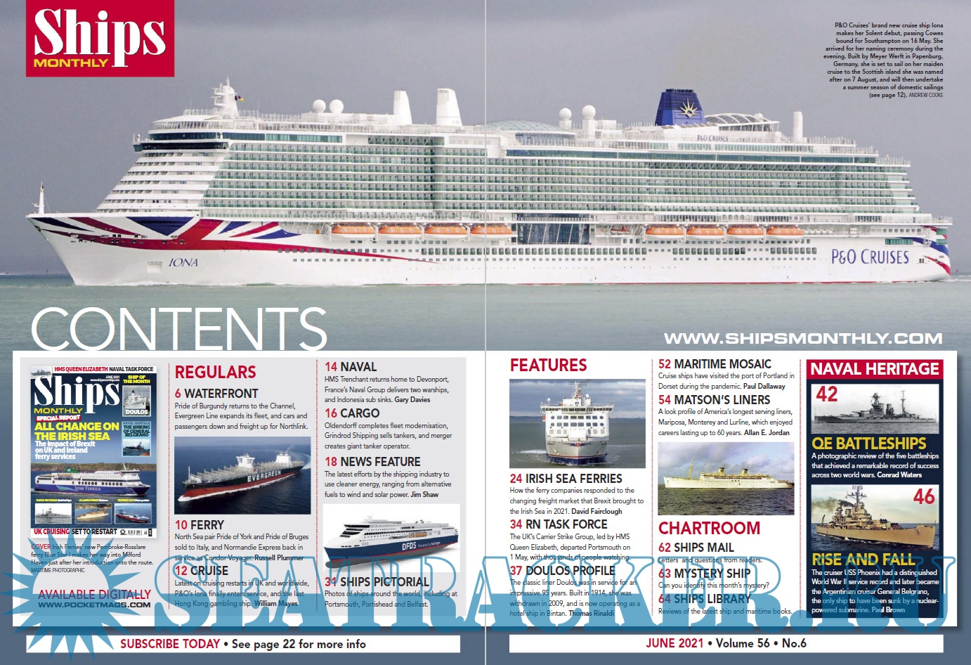 Description: Ships Monthly is the world's leading international shipping magazine. Ships Monthly provides news and features for ship enthusiasts and maritime professionals, including reports on the ferry, cruise, new building and cargo ship scene as well as navies across the world.The latest issue of Ships Monthly is out now, and is packed with all the usual news and features, including outstanding articles and features.