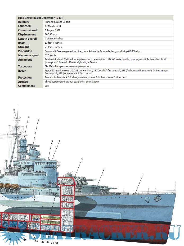 During the 1930's a new group of British light cruisers were commissioned, designed to replace an earlier generation of warships designed during the Great War. These new ships were sleek, fast, and relied on the 6-inch gun - a tried and tested weapon that combined hitting power with a high rate of fire. A second generation of light cruisers followed during the late 1930's, armed with twelve 6-inch guns apiece. One of these - HMS Belfast - is still afloat today.