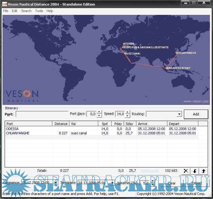 - Nautical Distance 2004 (distance table). Очень удобная утилита показывает время стоянки, погодный процент, расчет топлива и т.д.