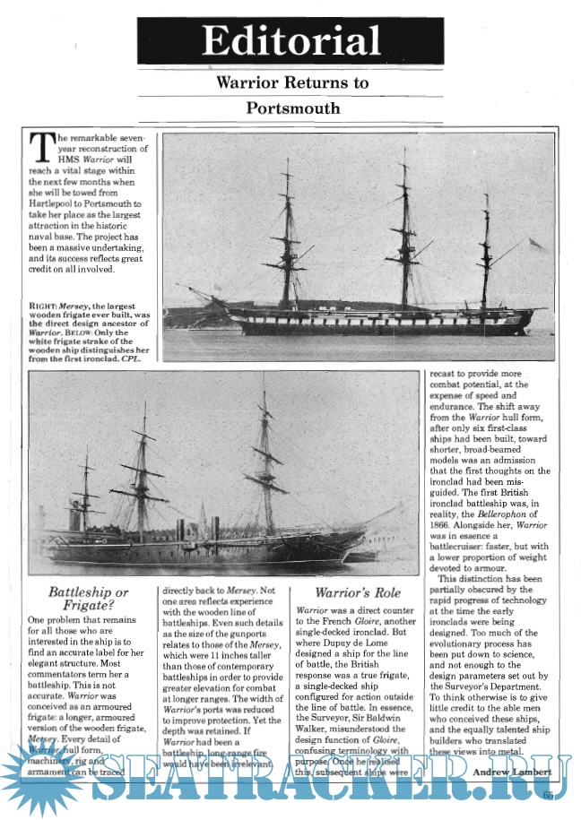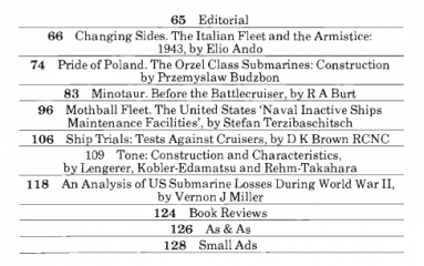 Description: This quarterly publication includes a wide range of feature articles devoted to the design, development and service history of the world's fighting ships.
