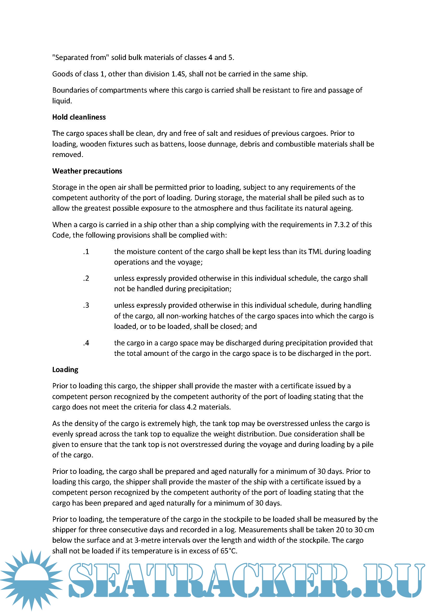 Description: Action to be taken when dealing with Direct Reduced Iron (DRI) cargoes.