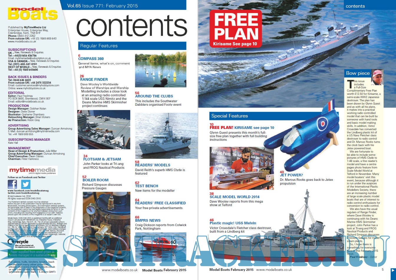 Year: 2015 Language: English Author: Lindsey Amrani (Editor) Genre: Periodical publication Edition: 2015-02 Format: PDF Quality: eBook Pages count: 76 Description: Model Boats magazine is a practical and informative read for those with a love for the hobby. It covers the latest news and views from the various clubs and associations around the country, useful hints, tips and step by step guides for those interested in the art of constructing a model boat as well as tests and recommendations of new boats and tools. Floating along behind these are great special features examining in depth different models from narrowboat to destroyer!