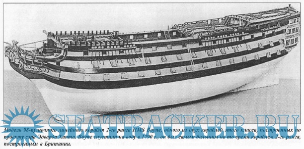 Описание: Надпись, вырезанная на фасаде здания перед плацем Королевского Военно-морского колледжа в Дартмуте, гласит: «It is on the Navy, under the good providence of God, that our wealth and peace depend» («Наш мир и достаток зависят от Божьего промысла и военно- морского флота»). Этот афоризм приписывают Карлу II. Действительно, фраза содержится в «Адмиралтейском законе о навигации», опубликованном в годы правления Карла II (1660–1685). В XVII в. господство на море стало первостепенной задачей для английской нации. Основу флота эпохи Реставрации составили линейные корабли, ставшие настоящим оплотом Британии.
