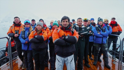 The Discovery Team leads an unforgettable penguin expedition on Danco Island. Brendon and Jason search for 10,000-year-old glacier ice to make an Antarctica-themed cocktail before Captain Erwan expertly navigates the Lemaire Channel.