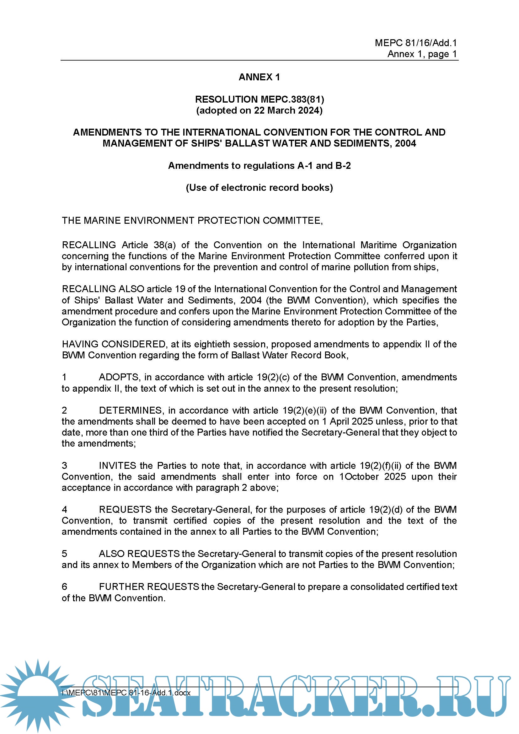 IMO resolution MEPC.383(81) includes amendments to the BWM Convention, which enter into force on 1 October 2025, and mean that where a ship chooses to use a BWRB in an electronic format, the Convention mandates the approval of that electronic record book.