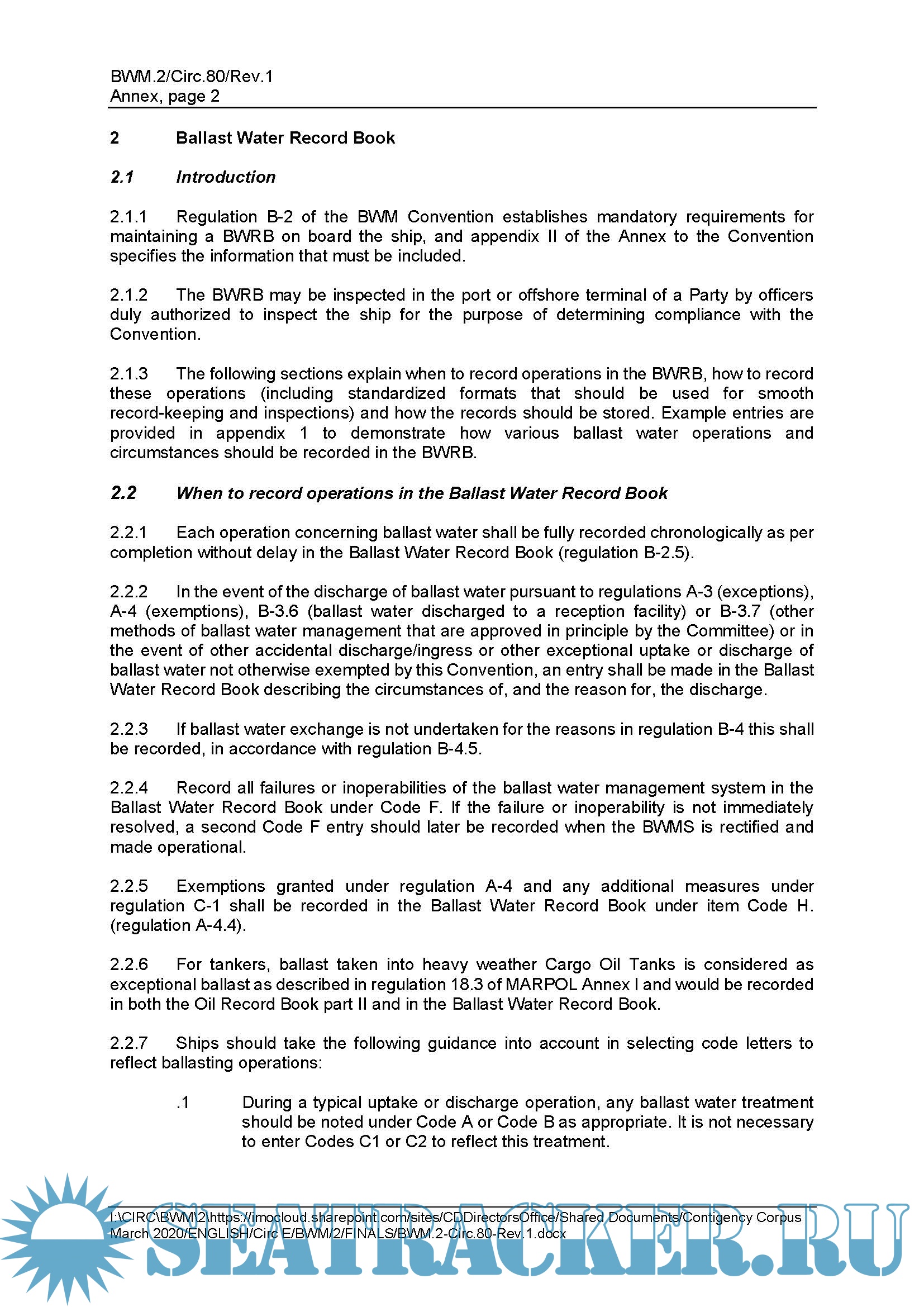 Guidance For Recording Entries In The Ballast Water Record Book (BWRB) - LMA [2023, PDF]