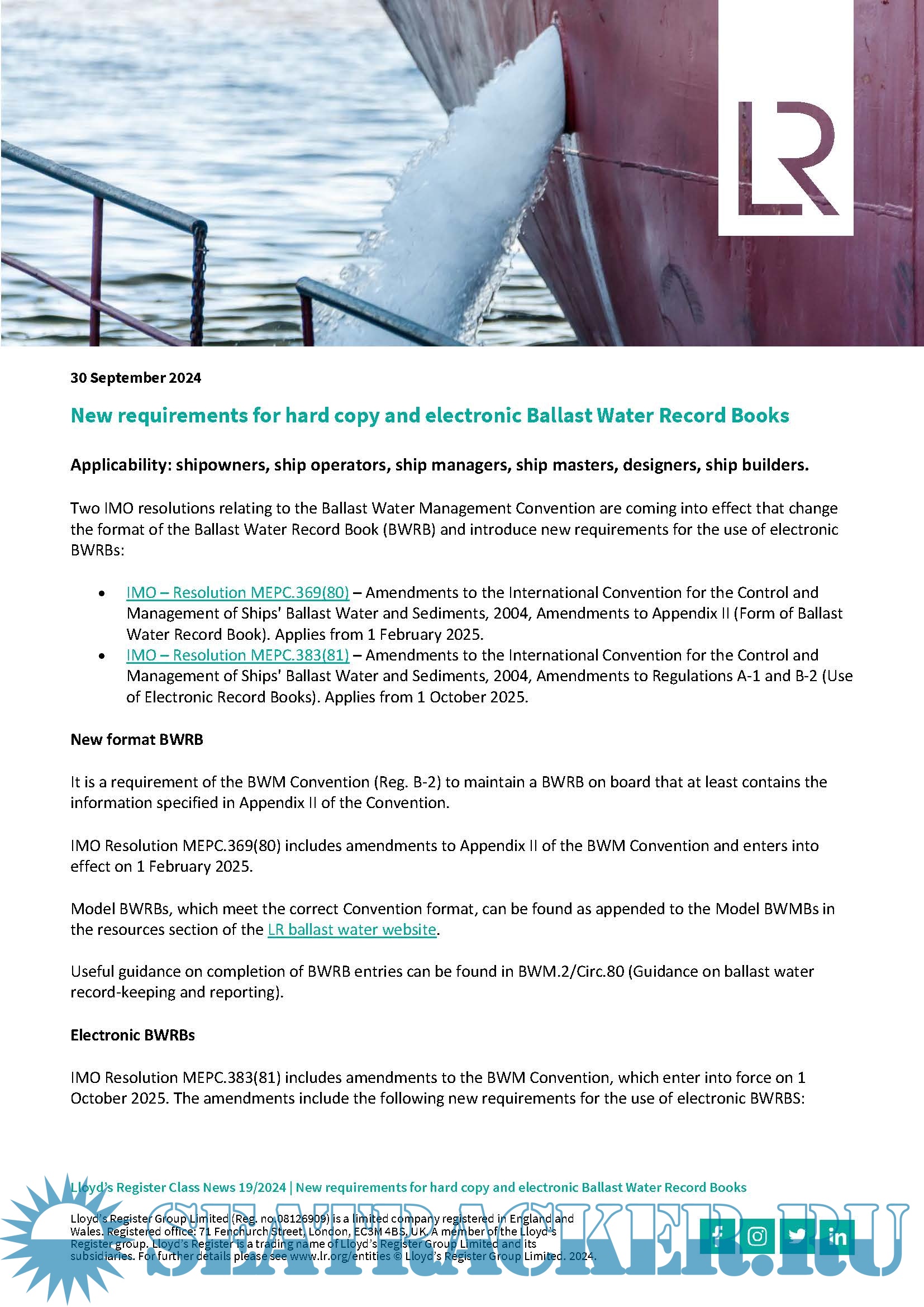 Model Ballast Water Record Book - Lloyd's Register [2024, PDF, DOCx]