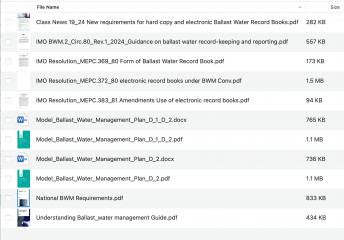 Having a ballast water record book (BWRB) onboard is a requirement of the BWM Convention (Reg. B-2). Fillable Model BWRBs, which meet the correct Convention format, can be found as appended to the Model BWMPs in the release's resources. Useful guidance on completion of BWRB entries can be found in BWM.2/Circ.80/Rev.1 - Guidance on ballast water record-keeping and reporting. IMO resolution MEPC.369(80) includes amendments to the BWM Convention which change the format of BWRBs, and enters into force on 1 February 2025. See Class News 19/24.