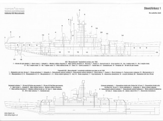 Description: Number 46 in this series is about the famous american battleship USS Massachusetts of WW2. Scale plans include main superstructure details from 1944 to 1946, at various levels, navigation bridge, upper deck, funnel, artillery/batteries director, turrets, masts, radar antennas, cutaways, etc. As a bonus there two separate double A3 (4 x A4) size sheet with top & side views of the battleship and her details. All drawings are first class and you can use them to add much more detail to your scale kit using plasticard or other materials.