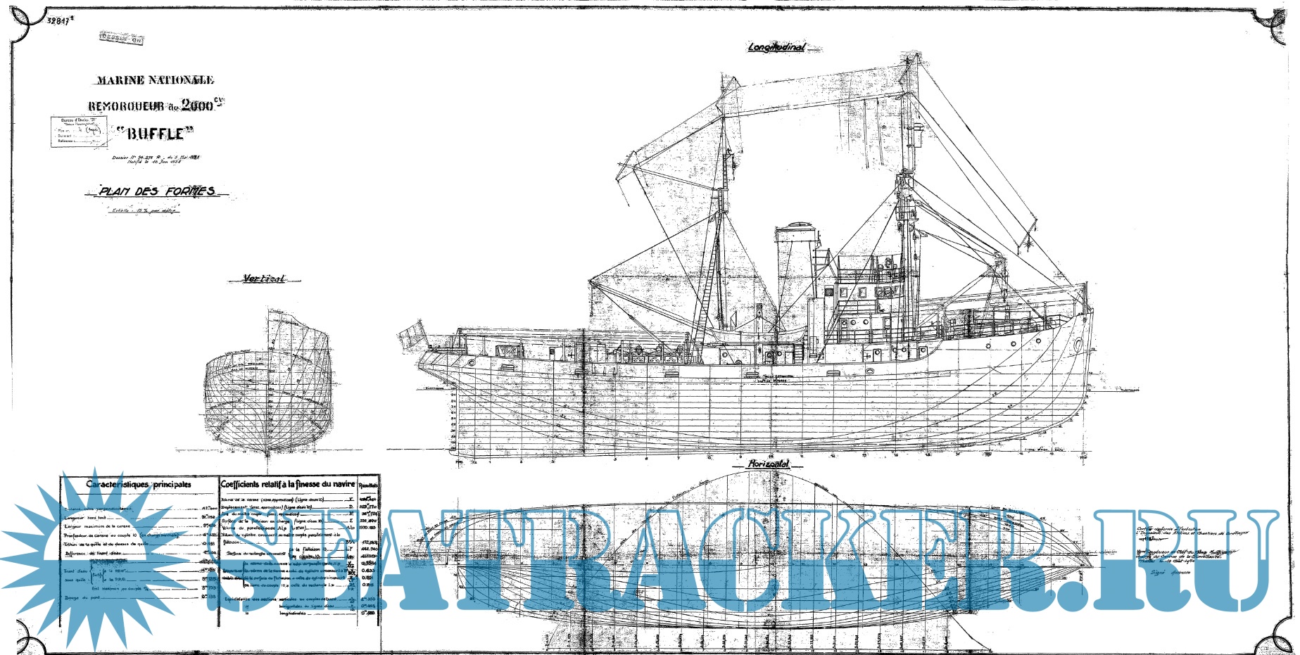 Архивные чертежи французского буксира BUFFLE 1939 год