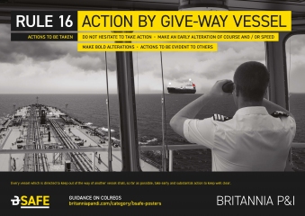 Description: The Britannia loss prevention team has created a series of COLREGs posters, highlighting the key elements of several rules in Part B of the COLREGs.