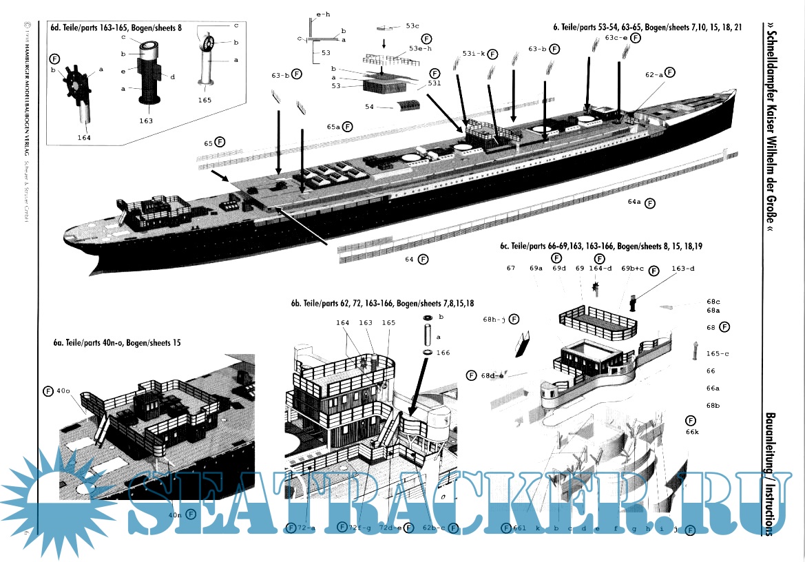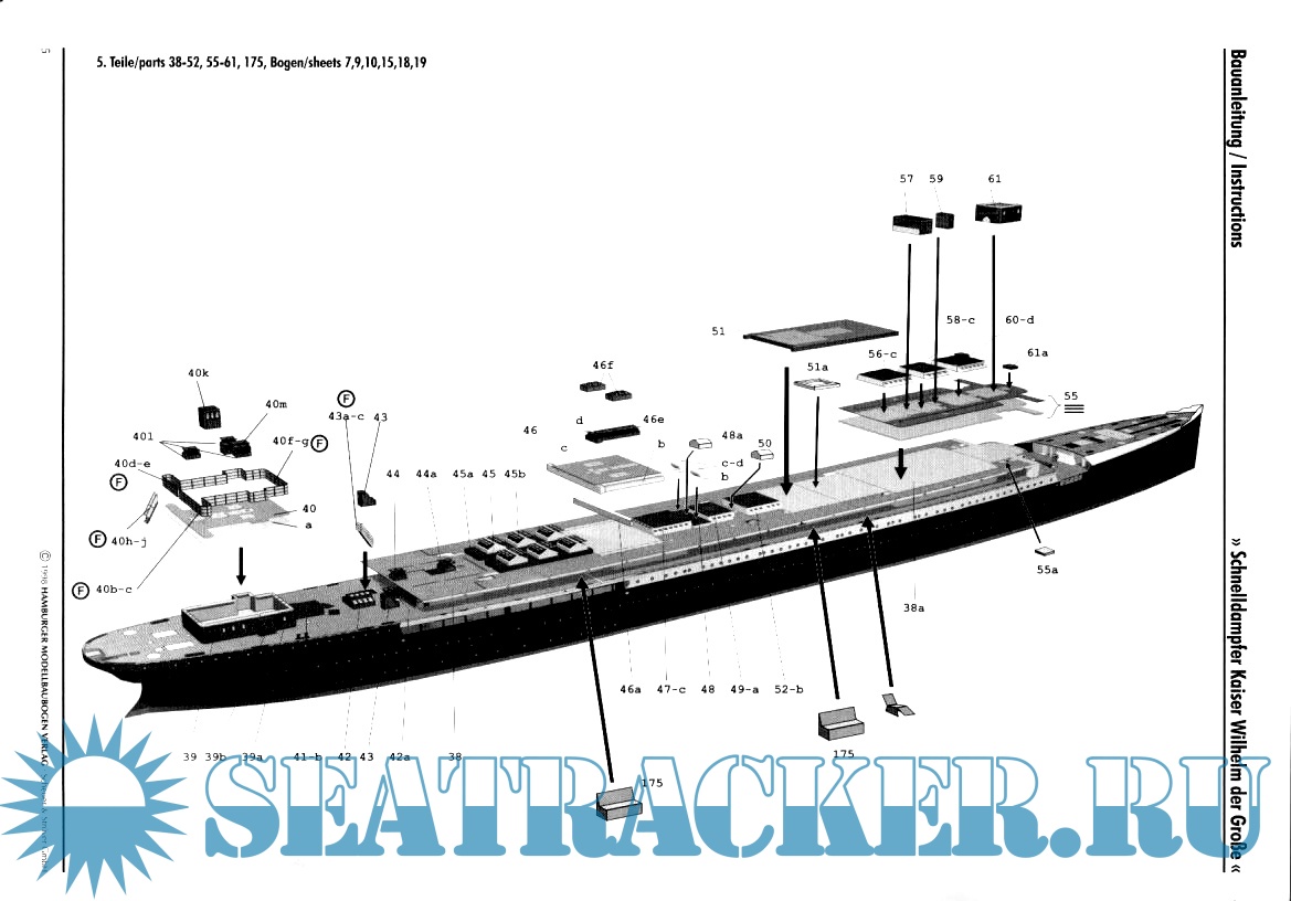 41 лист цветных выкроек и инструкций для изготовления бумажной модели германского океанского лайнера Kaiser Wilhelm der Grosse, 1897г в масштабе 1:250Скриншоты