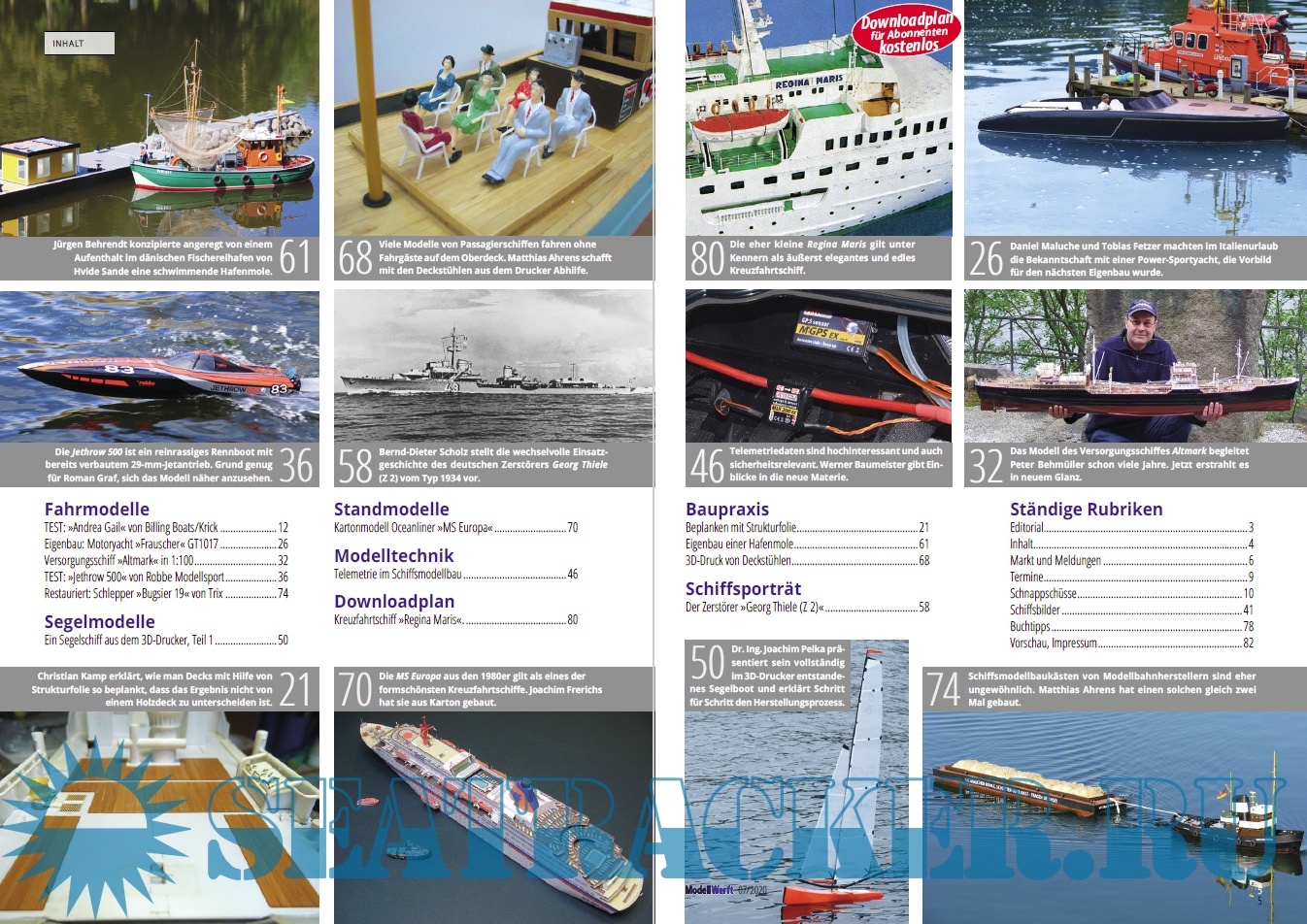 Year: 2020 Language: German Author: Eric Schafenrort (Redaktor) Genre: Periodical publication Edition: 2020-07 Format: PDF Quality: eBook Pages count: 84 Description: Das führende Fachmagazin für Schiffsmodellbauer. Egal ob Stand- oder Fahrmodell, ob kleines Segelboot oder gigantisches Kreuzfahrtschiff. Die Modellwerft informiert über Neuheiten, hilft mit Bautipps und fasziniert mit besonderen Reportagen.