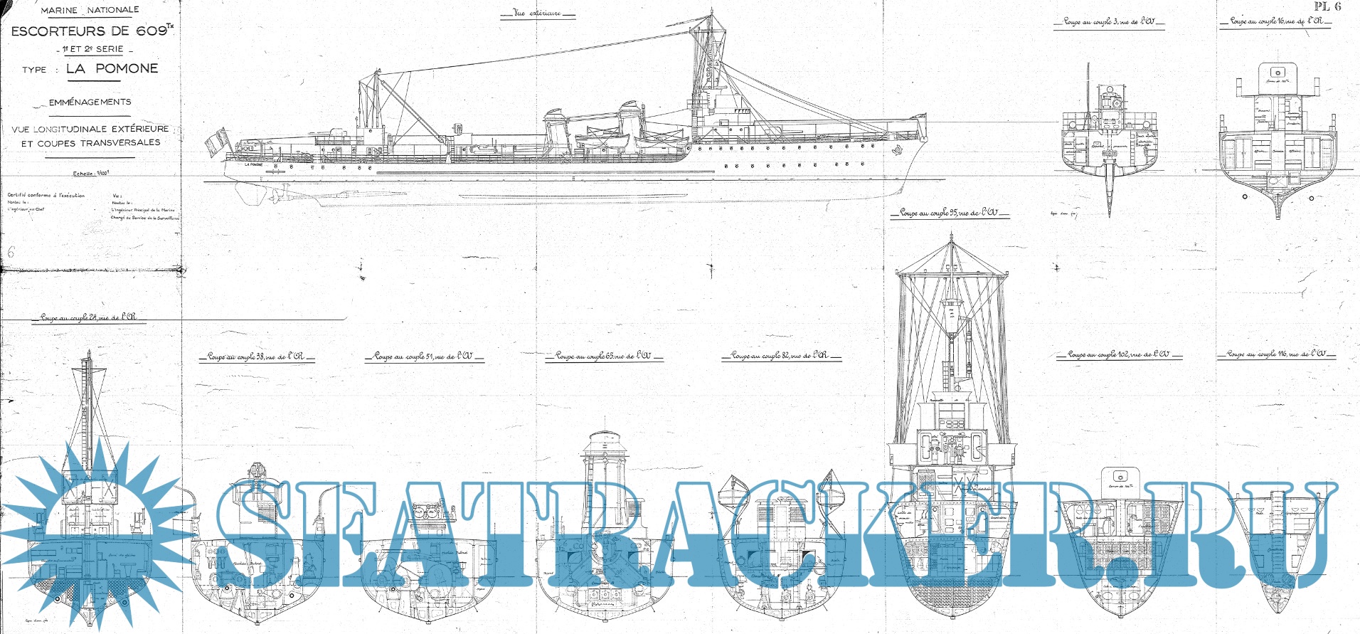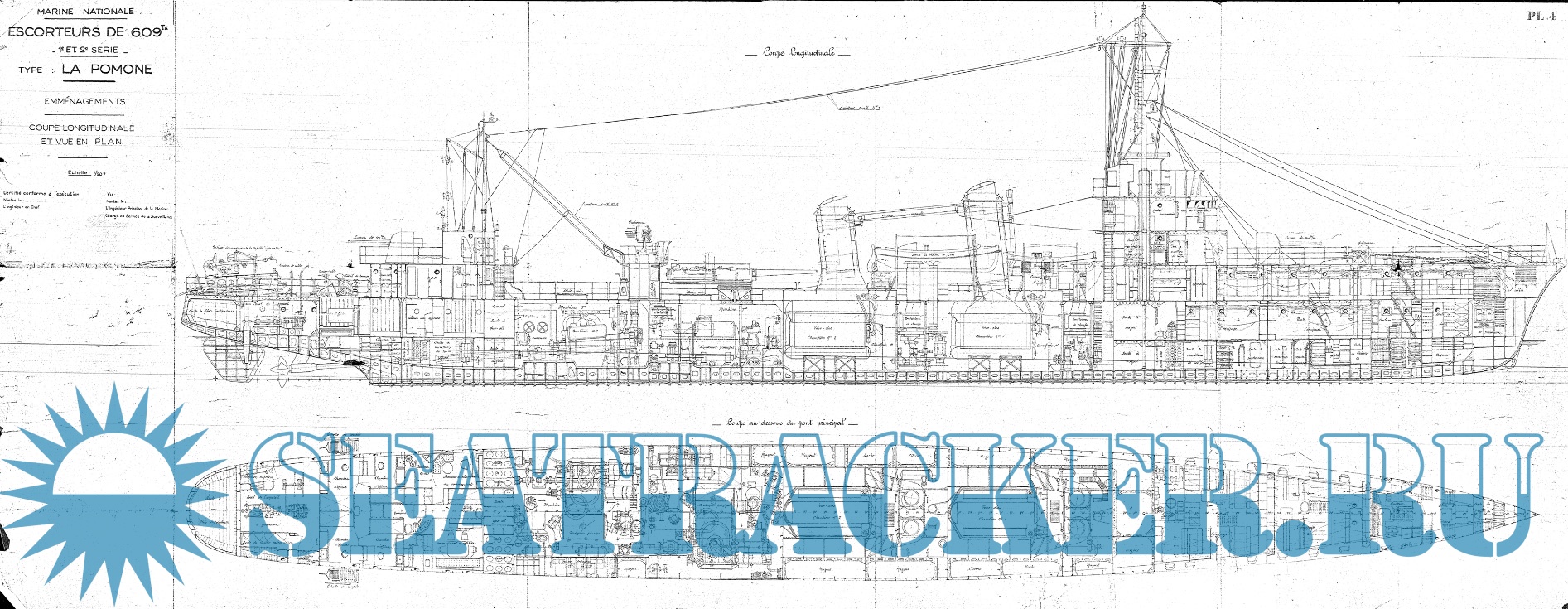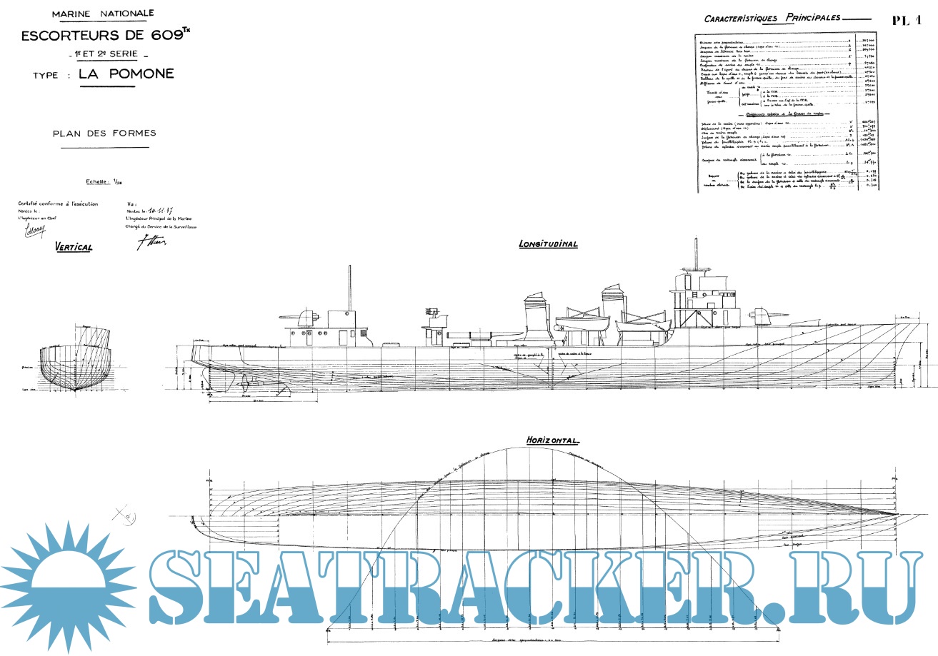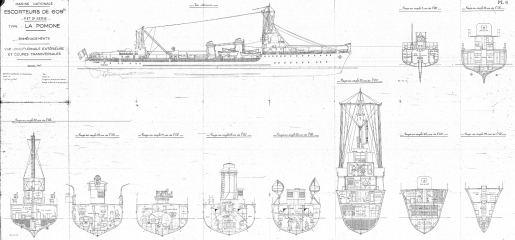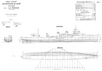 Архивные чертежи французского эсминца Эсминец BOMBARDE 1936 год